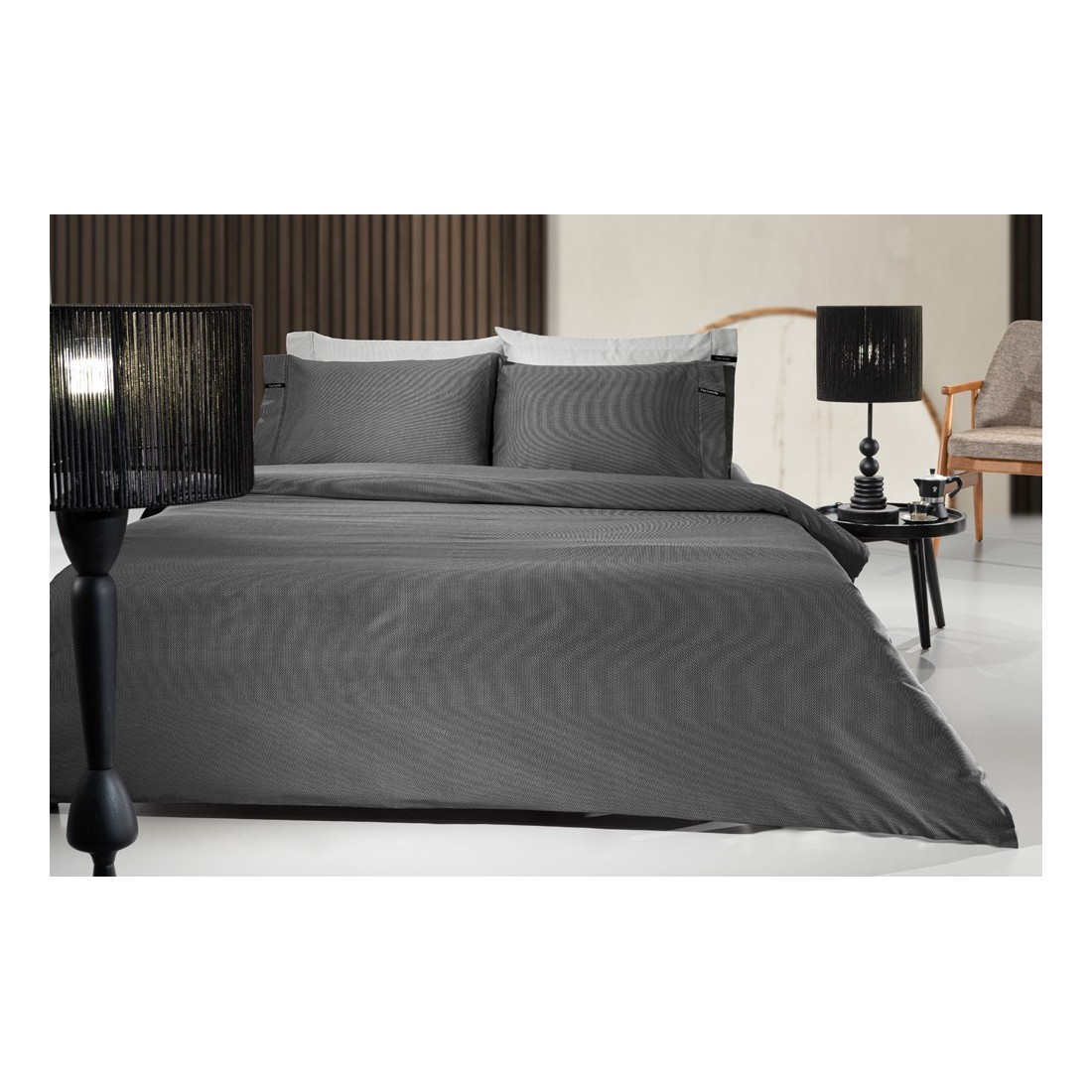 Σεντόνι king size με λάστιχο Guy Laroche minimal black & white 180x200+35