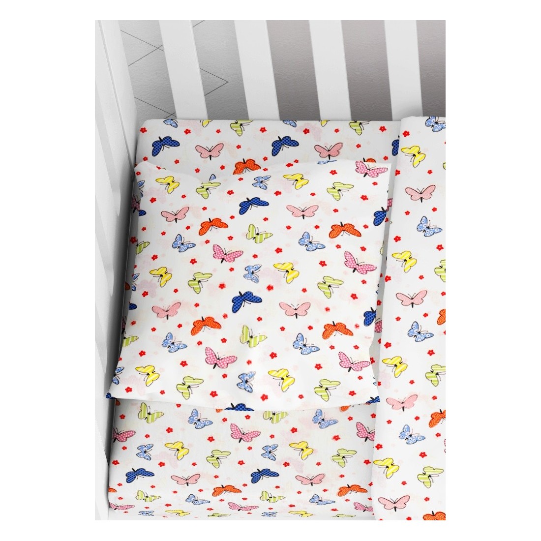 Βρεφική Μαξιλαροθήκη Dimcol Butterfly 49 Rotary Print, εμπριμέ με χαρούμενα χρώματα και παραστάσεις.