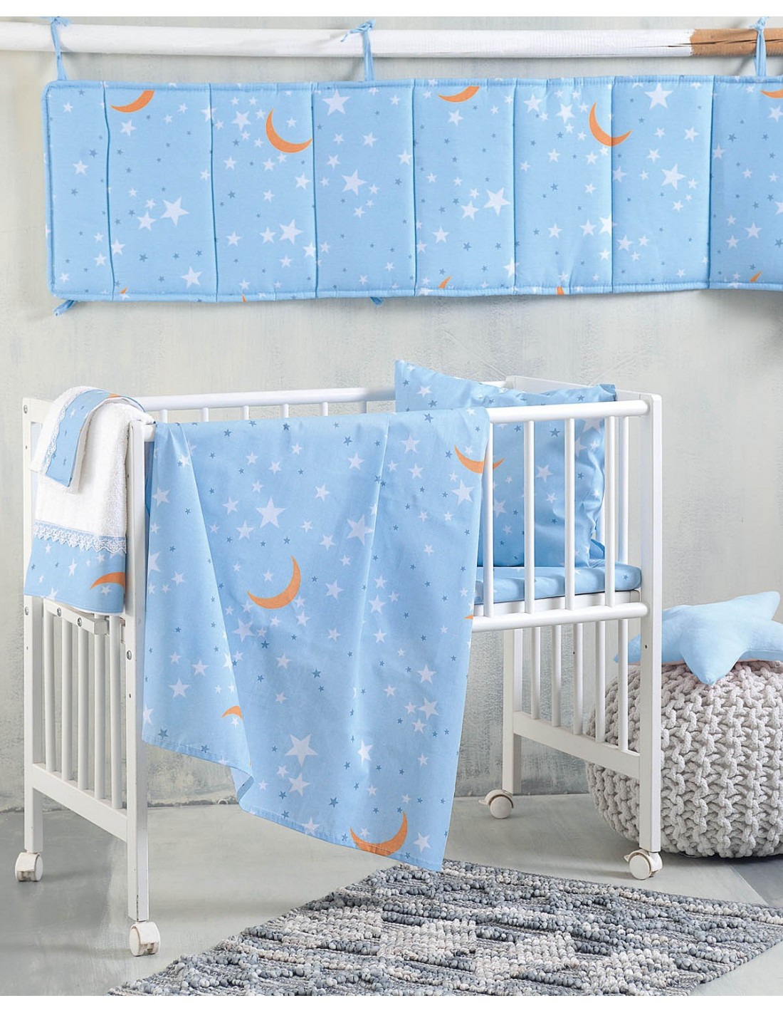 Σετ Παπλωματοθήκη Κούνιας 2 Τεμαχίων Rythmos Moonlight Μπλε 110x160