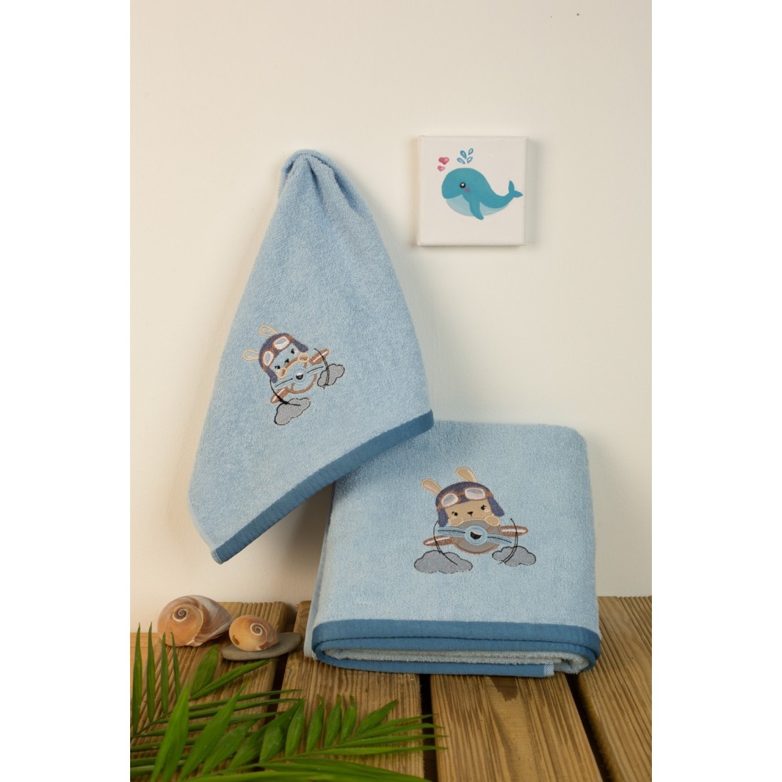 Σετ Βρεφικές Πετσέτες 2 Τεμαχίων Dimcol Airplane 156 Σιέλ 30x50 και 70x140