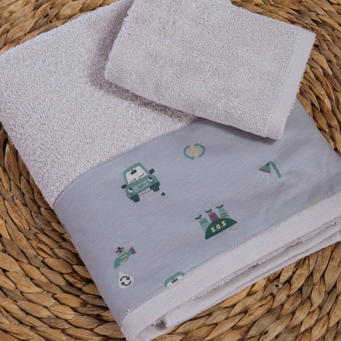 Σετ Βρεφικές Πετσέτες 2 Τεμαχίων Nef-Nef Green Car