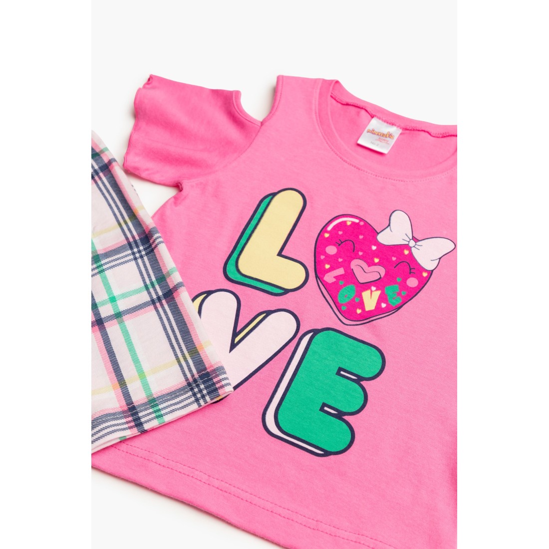 Βρεφική θερινή πιτζάμα για κορίτσι από 100% απαλό βαμβακερό ύφασμα υψηλής ποιότητας. Το σετ περιλαμβάνει μονόχρωμη κοντομάνικη μπλούζα με βολάν και ανοίγματα στα μανίκια, τύπωμα και καρό σορτσάκι. Συνδυάστε με τις αντίστοιχες γυναικείες πιτζάμες και δημιουργήστε το απόλυτο mother & daughter look.
