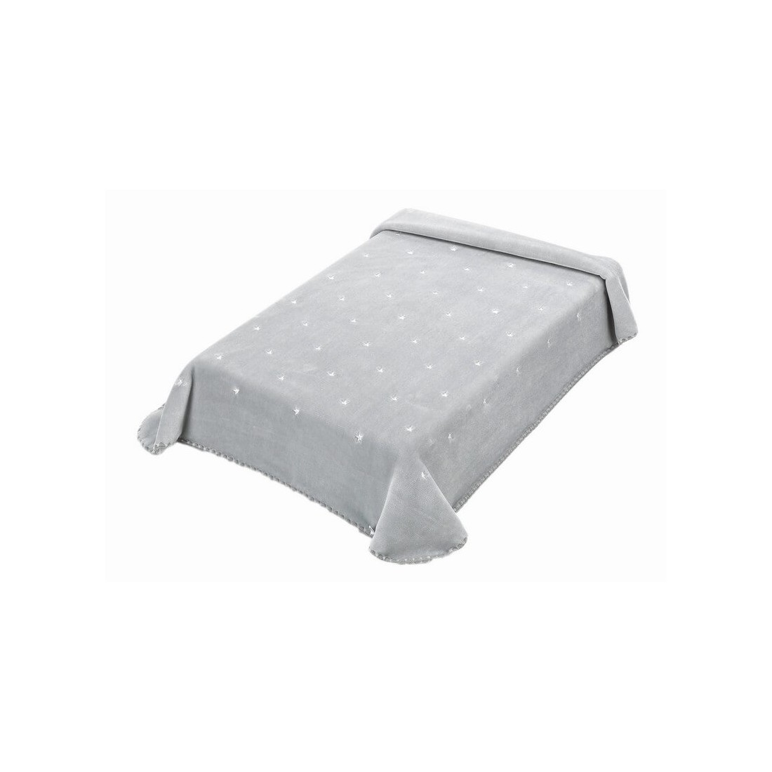 Πλούσια. ακρυλική κουβέρτα με βελουτέ υφή από τη Morven. κατασκευασμένη στην Ισπανία από τον οίκο Mora. To κέντημα είναι διάσπαρτα αστεράκια στην επιφάνεια. Το τελείωμά της είναι με βελονάκι ώστε να είναι εύκαμπτη. Η διαδικασία παραγωγής είναι σύμφωνη με τις αυστηρότερες ευρωπαϊκές προδιαγραφές προστασίας του περιβάλλοντος.