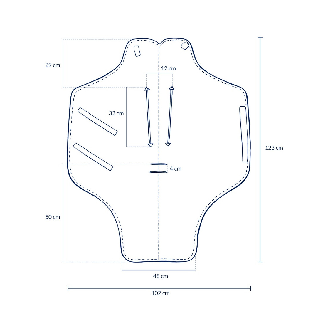 Η κουβέρτα car seat MULTI είναι μια νεότερη έκδοση της Best Seller μας, η οποία διακρίνεται από μεγαλύτερες οπές για ζώνες.