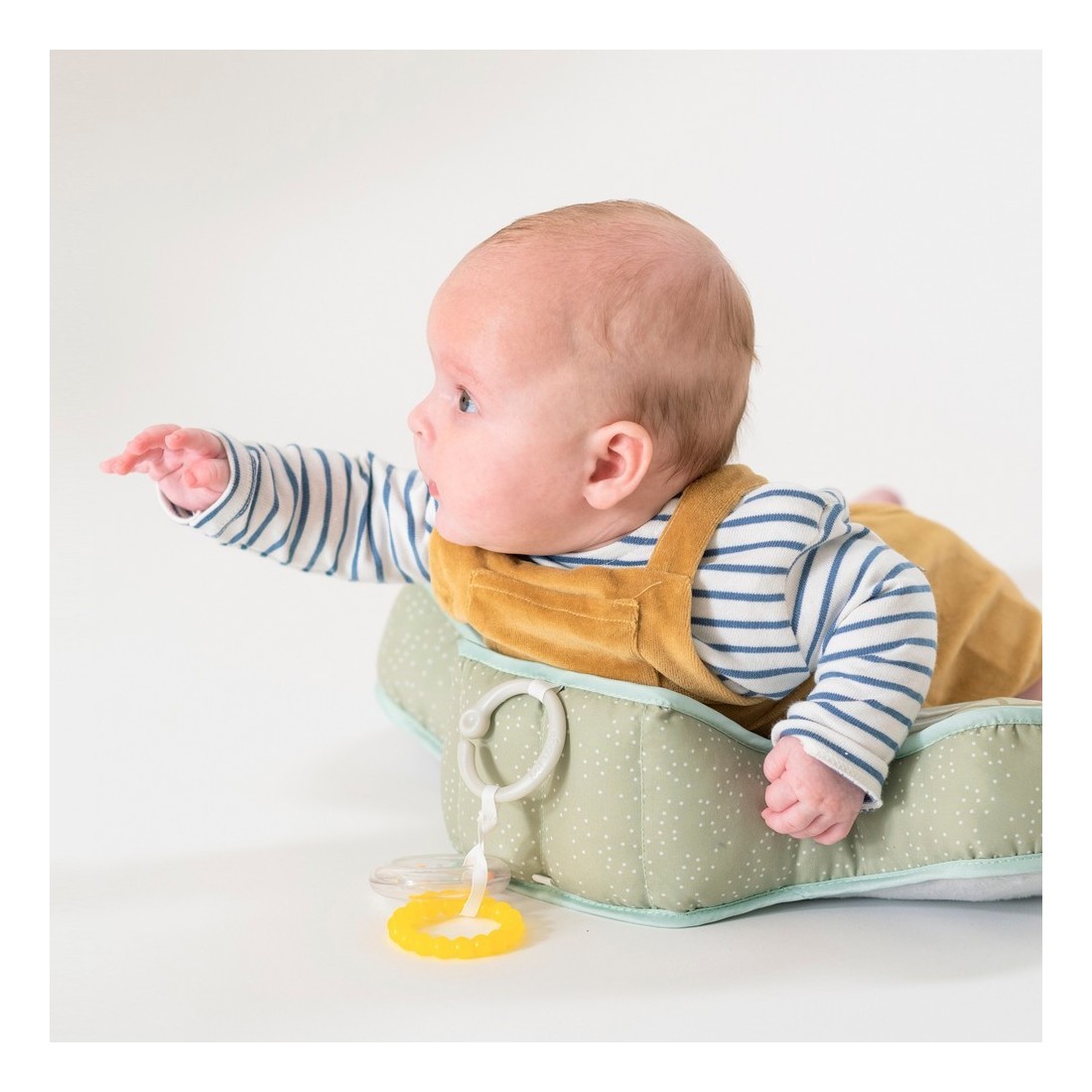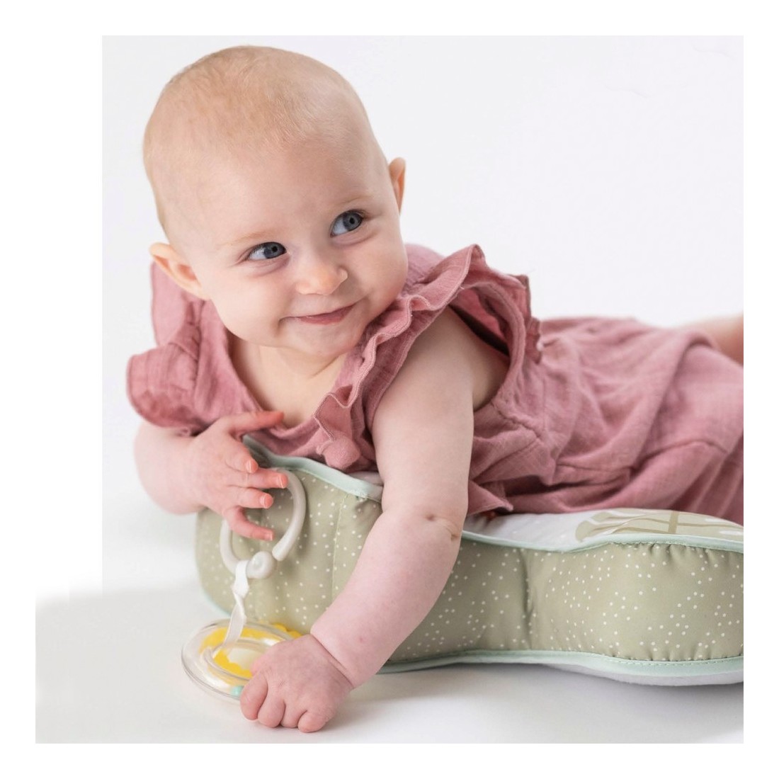 Εξαιρετικά μαλακό και απαλό μαξιλάρι σχεδιασμένο με εργονομική γωνία ώστε να παρέχει μέγιστη στήριξη και άνεση στο μωρό, μέχρι οι μύες του να γίνουν αρκετά δυνατοί για να μπορεί να σηκώσει το κεφάλι και το λαιμό του χωρίς βοήθεια. Η εξάσκηση με το μαξιλάρι δυναμώνει τους μύες της πλάτης, του λαιμού και των ώμων, έτσι το μωρό πετυχαίνει σημαντικά ορόσημα όπως να κάθεται, να γυρίζει, να μπουσουλάει και να περπατά.