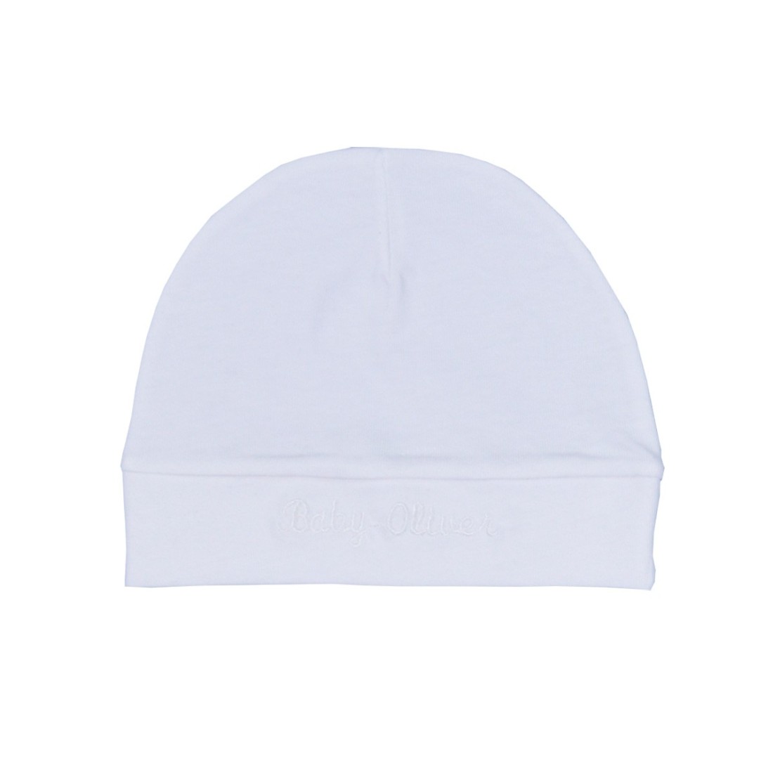 Βρεφικό σκουφάκι από τη Baby Oliver, από ύφασμα ζέρσυ από 100% βαμβάκι πενιέ με πιστοποίηση Oekotex ζέρσευ σε χρώματα λευκό
