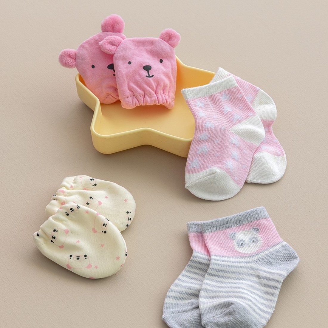Σετ Βρεφικά Καλτσάκια και Γαντάκια 2+2 Ζεύγη Palamaiki NB0144 Girl