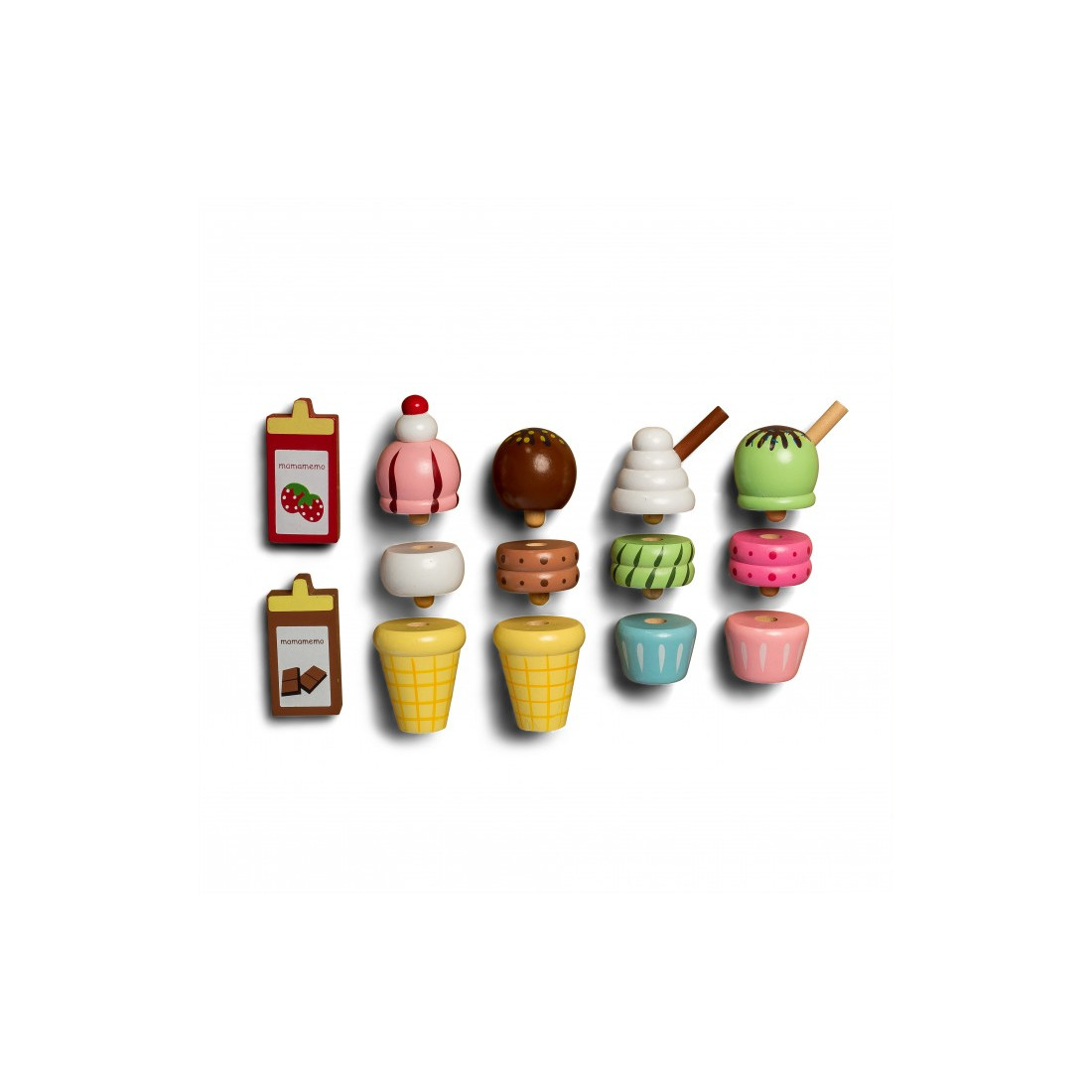 Το κατάστημα παγωτού MAMAMEMO® περιέχει όλα όσα χρειάζονται τα παιδιά για την κατασκευή, την πώληση και την αγορά πολύχρωμων, ξύλινων παγωτών σε χωνάκι και κυπελάκι.