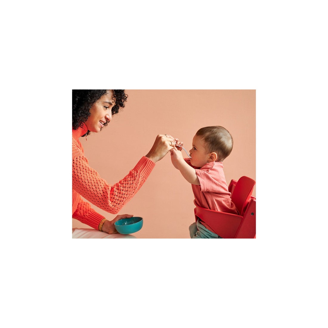 Το κουτάλι έχει στενή μύτη και ρηχή κοιλότητα, σχεδιασμένο για να ταιριάζει στο στόμα του μωρού σας. Η μακριά λαβή σημαίνει ότι μπορείτε να φτάσετε εύκολα στο κάτω μέρος των βάζων με τις παιδικές τροφές.