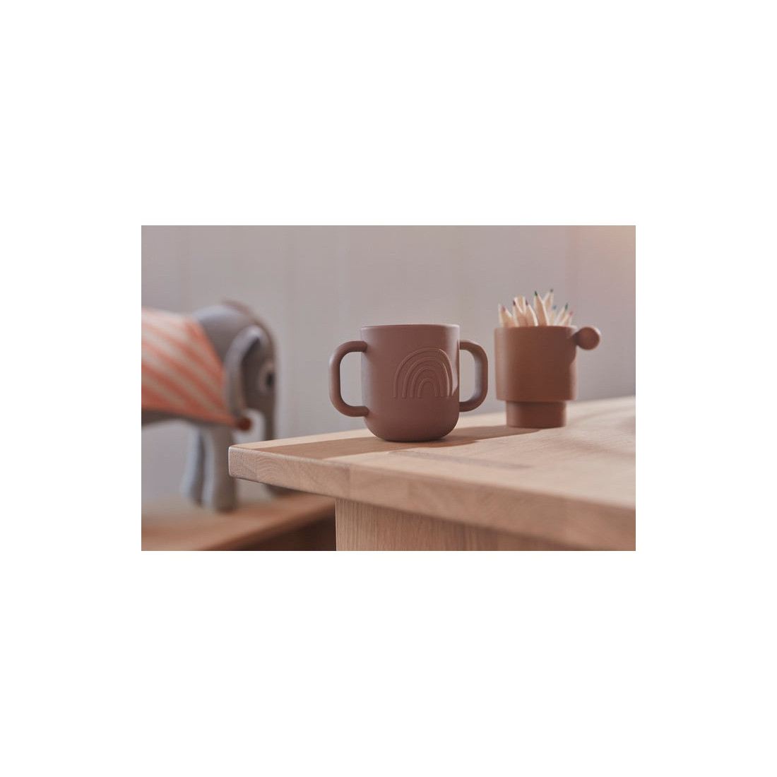 Ποτηράκια από 100% σιλικόνη με τις γνωστές φιγούρες OYOY. Τα κύπελλα είναι σχεδιασμένα σε όμορφα χρώματα και έχουν δύο λαβές που διευκολύνουν το παιδί να πιει μόνο του. Τα κύπελλα είναι ένα πρακτικό στοιχείο στην καθημερινή ζωή με τα παιδιά, καθώς δεν σπάνε όταν πέφτουν στο πάτωμα. Τα κύπελλα Kappu διατίθενται σε σετ των δύο και είναι διαθέσιμα και σε άλλα χρώματα. Χρώμα: Dusty Blue / Choko Υλικό: 100% Σιλικόνη Διαστάσεις: Υ7,5 x Π11 x Π6,5 cm Κατάλληλο για πλυντήριο πιάτων και φούρνο μικροκυμάτων. Συσκευασία σε κουτί. Χώρα κατασκευής Κίνα