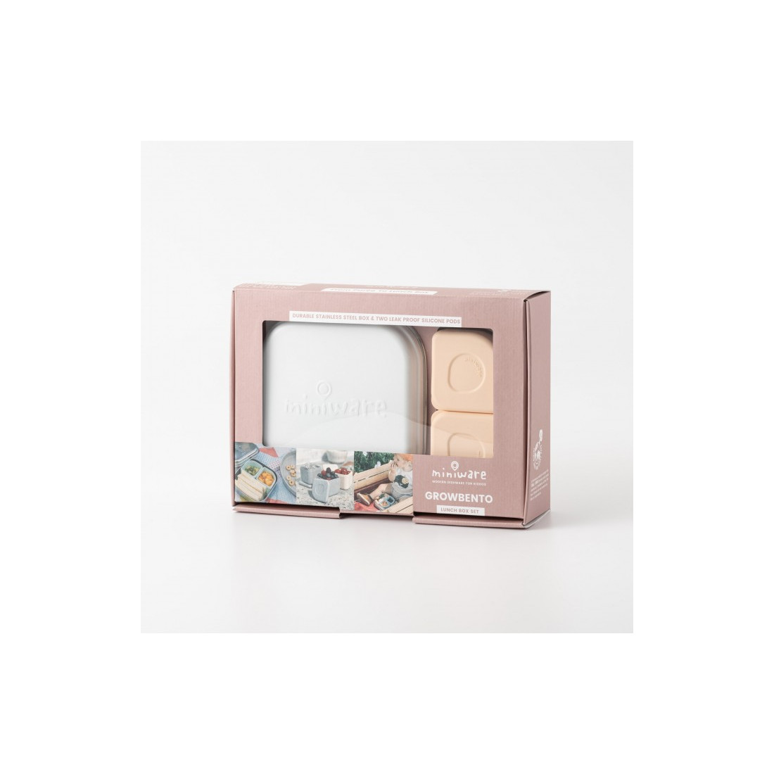 Δοχείο φαγητού 15x15cm από ανοξείδωτο ατσάλι με 2 δοχεία σιλκόνης 7x7cm, , Συσκευασία σε κουτί με παράθυρο |