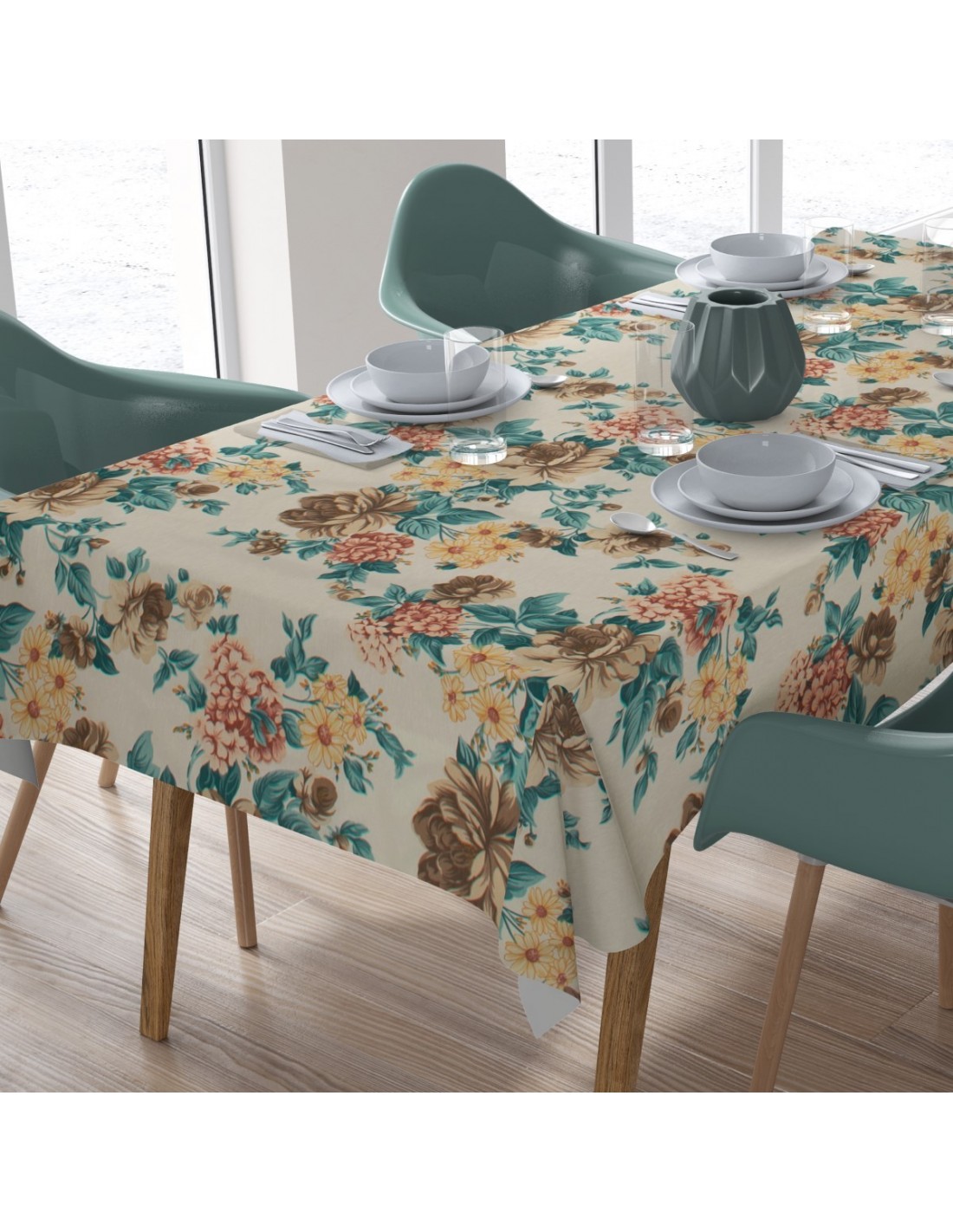 Καρέ Dimcol Vintage Flower 480 Εκρού-Aqua 90x90