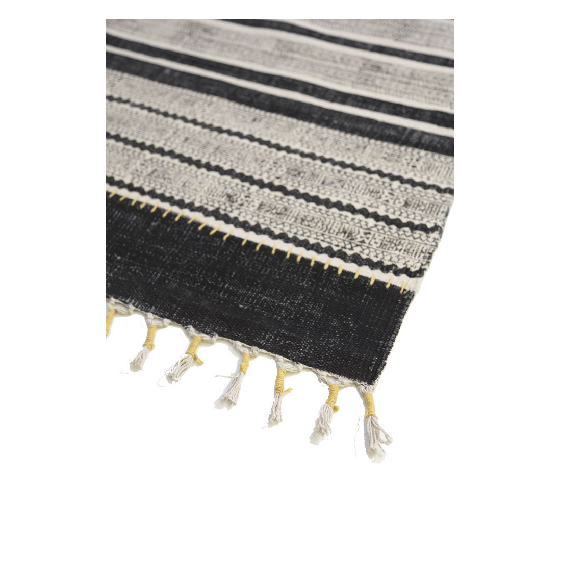 Πανέμορφα, ιδιαίτερα βαμβακερά κιλίμια με βάση αποχρώσεις του γκρι και χαρούμενες έγχρωμες πινελιές στα χειροποίητα κρόσσια και στο σχέδιο σε λεμονί, μπλε ή πορτοκαλί απόχρωση. Boho αισθητική βασισμένη σε γεωμετρικά σχέδια, ιδανικά για χώρους που φτιάχνουν τη διάθεση.