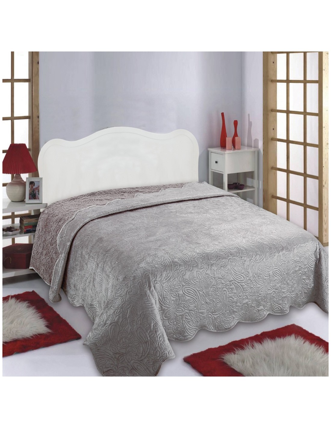 Κουβέρτα με βελούδο στην πάνω πλευρά και ανάγλυφη βαμμένη sherpa στην κάτω.