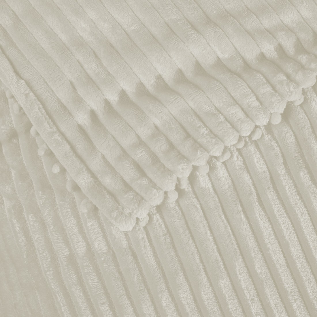 Κουβέρτα μονόχρωμη fleece με πομ-πομ. Είναι απο 100% polyester με βάρος 330gr/m², υποαλλεργική, ζεστή, με ιδιαίτερα απαλή υφή και μεγάλη αντοχή. Διατίθεται σε διάσταση 220X240εκ.