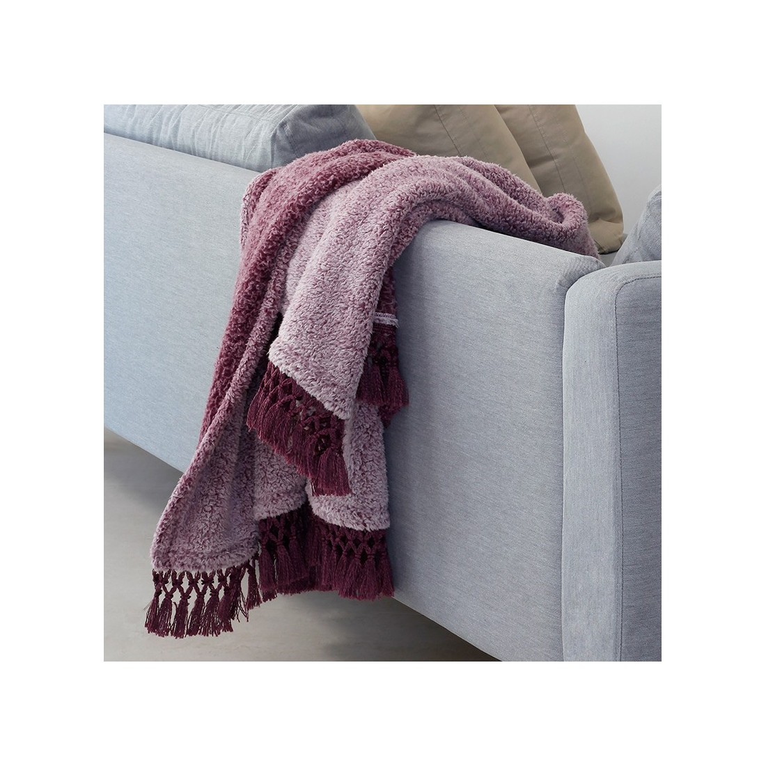 Κουβέρτα καναπέ, μονόχρωμη degrade με γούνα sherpa και κρόσσια από την νέα συλλογή της Melinen.
