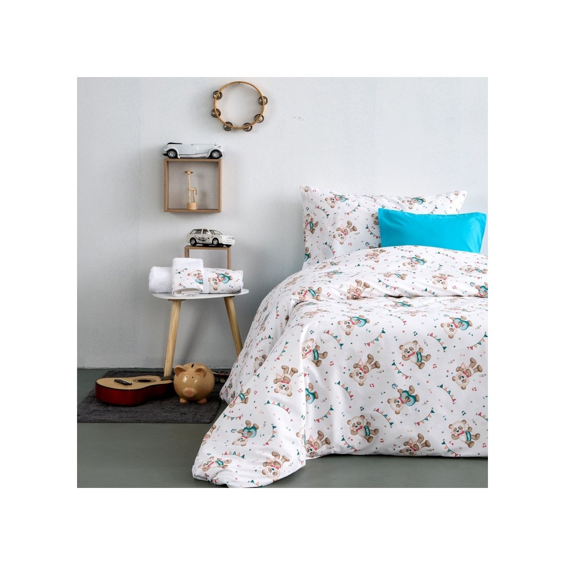 ΚΟΥΒΕΡΛΙ MONO 160X240- MUSIC BLUE -Σε λευκό φόντο και μπλέ λεπτομέρειες και σχέδιο με αρκουδάκια που παίζουν μουσική που εντυπωσιάζει τους μικρούς μας φίλους. Ποιότητα πρωτοποριακό design . κατασκευασμένα από 100% βαμβάκι με 152 κλωστές. ύφασμα που αναπνέει ώστε να προσφέρει έναν άνετο και υγιή ύπνο. Με σεβασμό προς το ευαίσθητο παιδικό δέρμα και τις καλύτερες πρώτες ύλες. Θα το βρείτε και με ασσορτί πετσέτες και σετ σεντόνια.