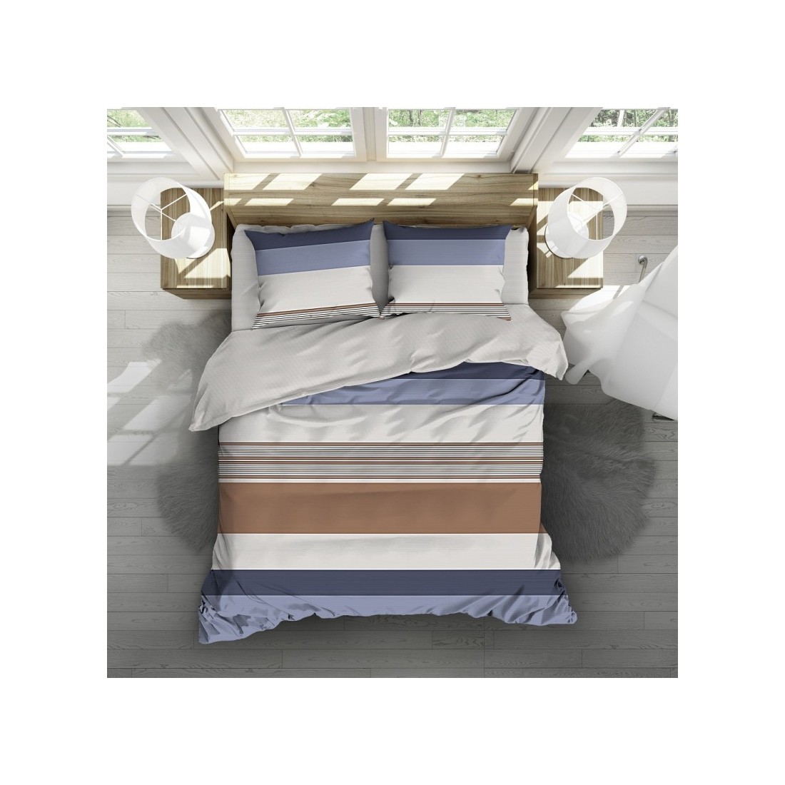 ΣΕΤ ΚΟΥΒΕΡΛΙ ΜΟΝΟ 160X240 +1 ΜΑΞ/ΚΗ -MANET -Διαθέτει μοναδικές και σύγχρονες αποχρώσεις προσδίδοντας την αίσθηση που ταιριάζει στην εποχή μας. αποτελούνται από σύγχρονο γραμμικό ριγέ σχέδιο σε μπλε βάση και γκρι-σιέλ και καφέ λεπτομέρειες. Με την πιο ευχάριστη αίσθηση ποιότητας “100% COTTON 144 TC ” ιδιαίτερης ύφανσης που προσδίδει ιδιαίτερη απαλότητα υφής στο ύφασμα. Ενώ το μοναδικό φινίρισμα τους φαίνεται από την αντοχή στις πλύσεις . Διαθέσιμο σε σετ σεντόνια υπέρδιπλα και μονά καθώς και σε αντίστοιχα κουβερλί με μαξ/κες για τις δροσερές νύχτες του καλοκαιριού .