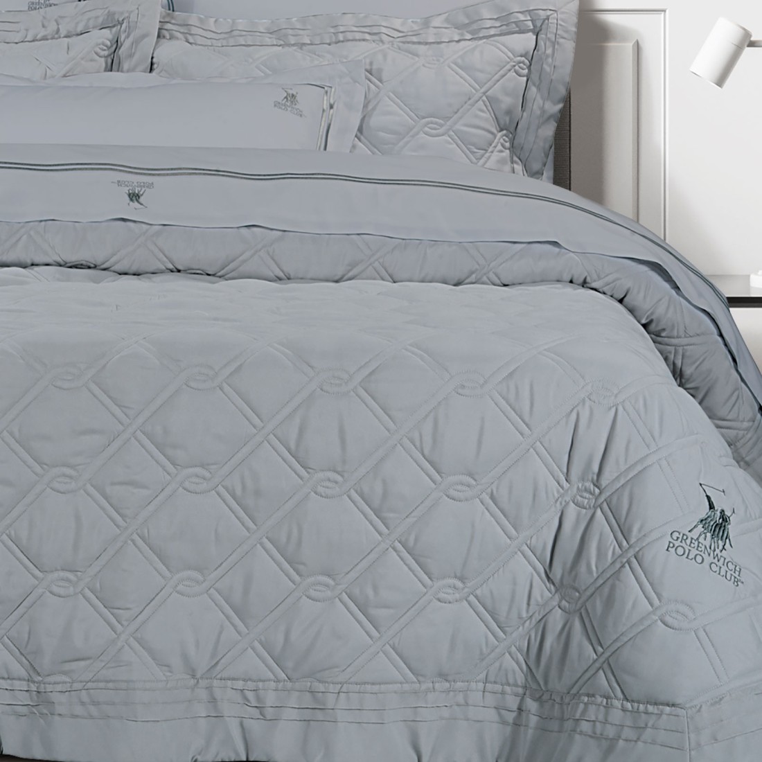 Κουβερλί σετ Greenwich Polo Club της σειράς Premium από 100% microfibre. Αυτό που χαρακτηρίζει την συλλογή είναι οι απαλές αποχρώσεις, τα διακριτικά σχέδια και το διαχρονικό ύφος. Το σετ αποτελείται από ένα κουβερλί σε διάσταση 220Χ240εκ και 2 μαξιλαροθήκες σε διάσταση 50Χ70+8εκ με περιμετρική ραφή oxford.