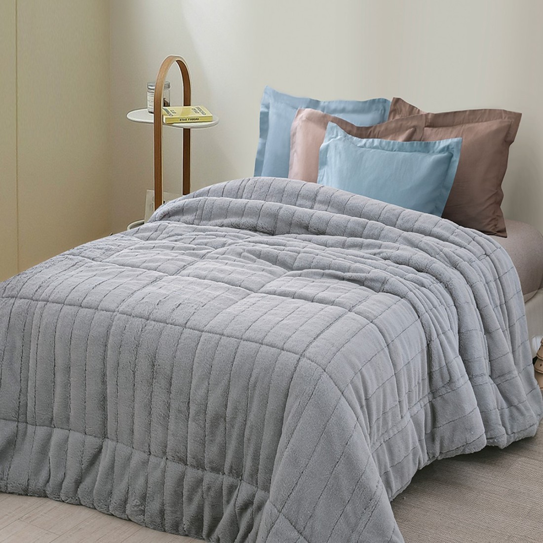 Κουβερτοπάπλωμα με Γούνα Υπέρδιπλο Palamaiki Etta Grey 220x240