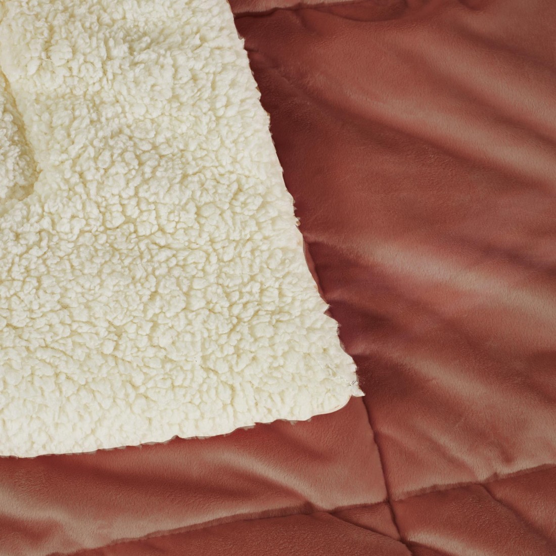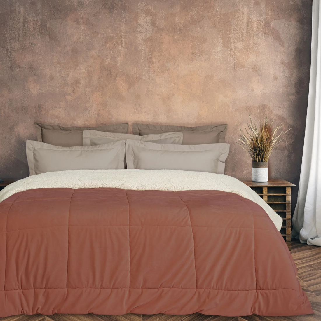 Κουβερτοπάπλωμα μονόχρωμο από ύφασμα fleece με ανάγλυφο σχέδιο και γούνα sherpa. Το εξωτερικό του ύφασμα είναι από 100% polyester ενώ το εσωτερικό του αποτελείται από ίνες hollowfibre, ειδικά μελετημένο για απαλή υφή. Ζεστό, σε θερμότητα 11tog, υποαλλεργικό, ιδιαίτερα μαλακό και ανθεκτικό στη χρήση με βάρος 530gr/m². Διατίθεται σε διάσταση 220Χ240εκ.