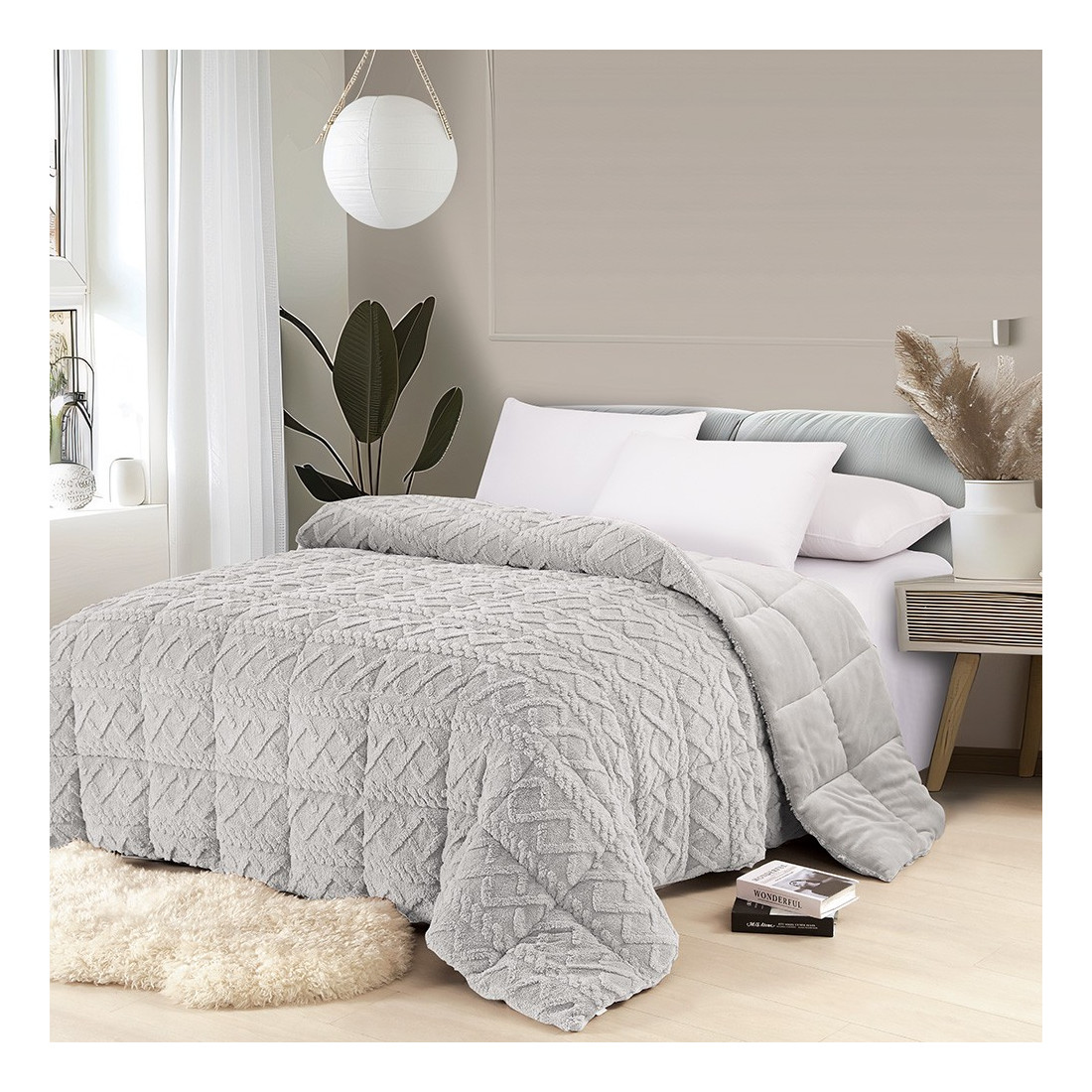 Το κουβερτοπάπλωμα Ian είναι κατασκευασμένο από Jacquard Sherpa 250gsm εξωτερικά Flannel 200gsm εσωτερικά. ενώ διαθέτει γέμιση από 100% hollowfiber 300gsm. Αποτελεί το ιδανικό σκέπασμα για τους χειμερινούς μήνες του χρόνου αφού χαρίζει αίσθημα απόλυτης ζεστασιάς απαλότητας ακόμα και τις πιο κρύες νύχτες. Με μοντέρνο ανάγλυφο σχέδιο. θα δώσει στυλ σε κάθε υπνοδωμάτιο. Διατίθεται σε δυο διαστάσεις και τέσσερις μοντέρνες αποχρώσεις.