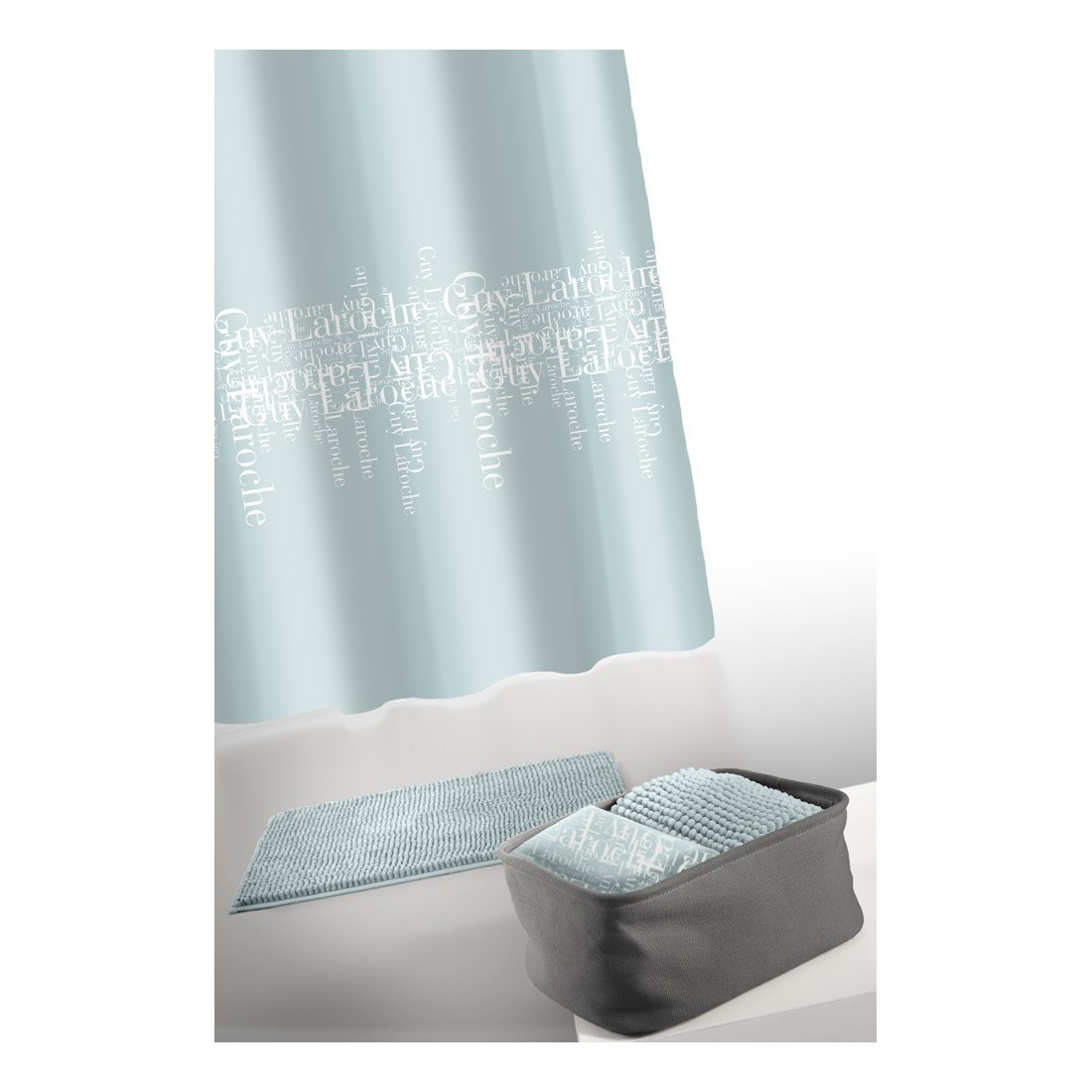 Σετ Μπάνιου 4 Τεμαχίων Guy Laroche Abbey Aqua που θα δώσει νέο στυλ στο χώρο σας. Περιλαμβάνει την κουρτίνα, 10 κρίκους, πατάκι και καλάθι καλλυντικών.