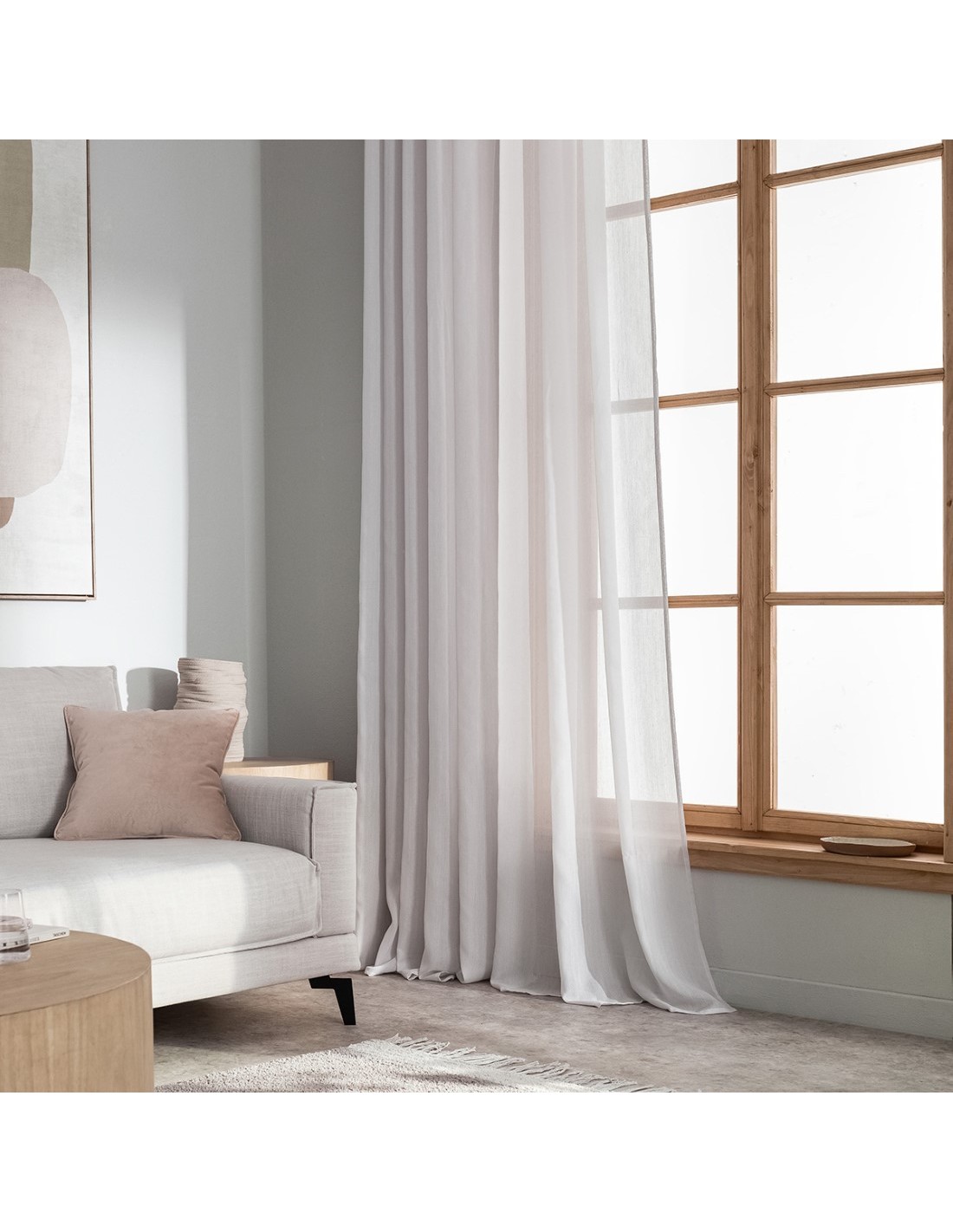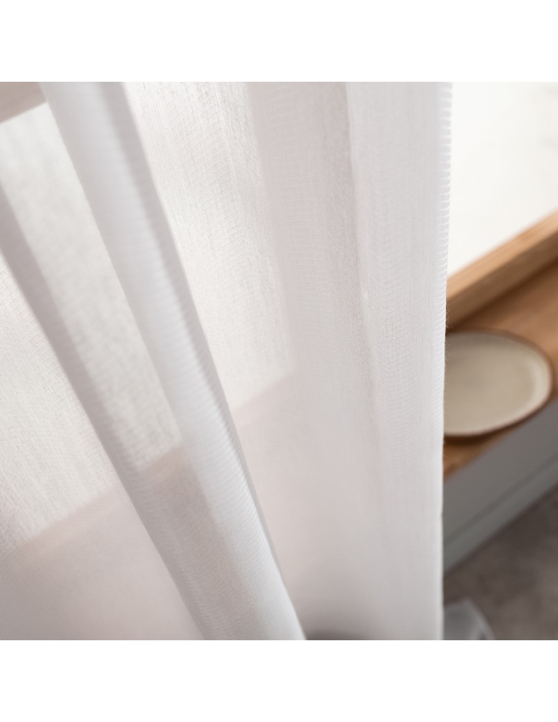 Κουρτίνα ημιδιάφανη με jacquard διακριτικό σχέδιο ψαροκόκκαλο. Ραμμένη με ματ ασημί τρουκς.