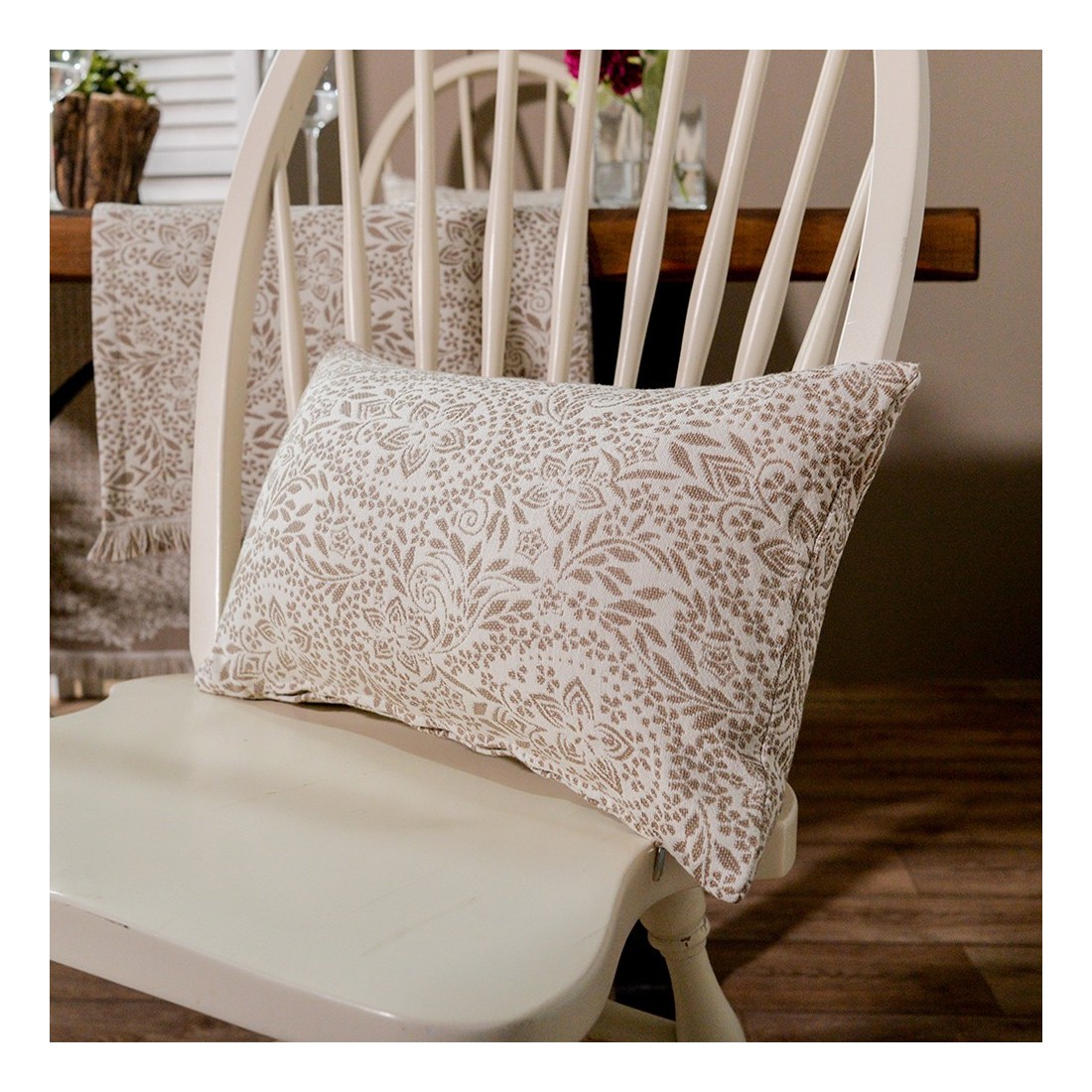 Μαξιλάροθήκη Διακόσμησης Teoran από 75% Βαμβάκι-25% Πολυέστερ, με όμορφο σχέδιο, μπορντούρα και κρόσσι στην άκρη, σε χρώμα καφέ