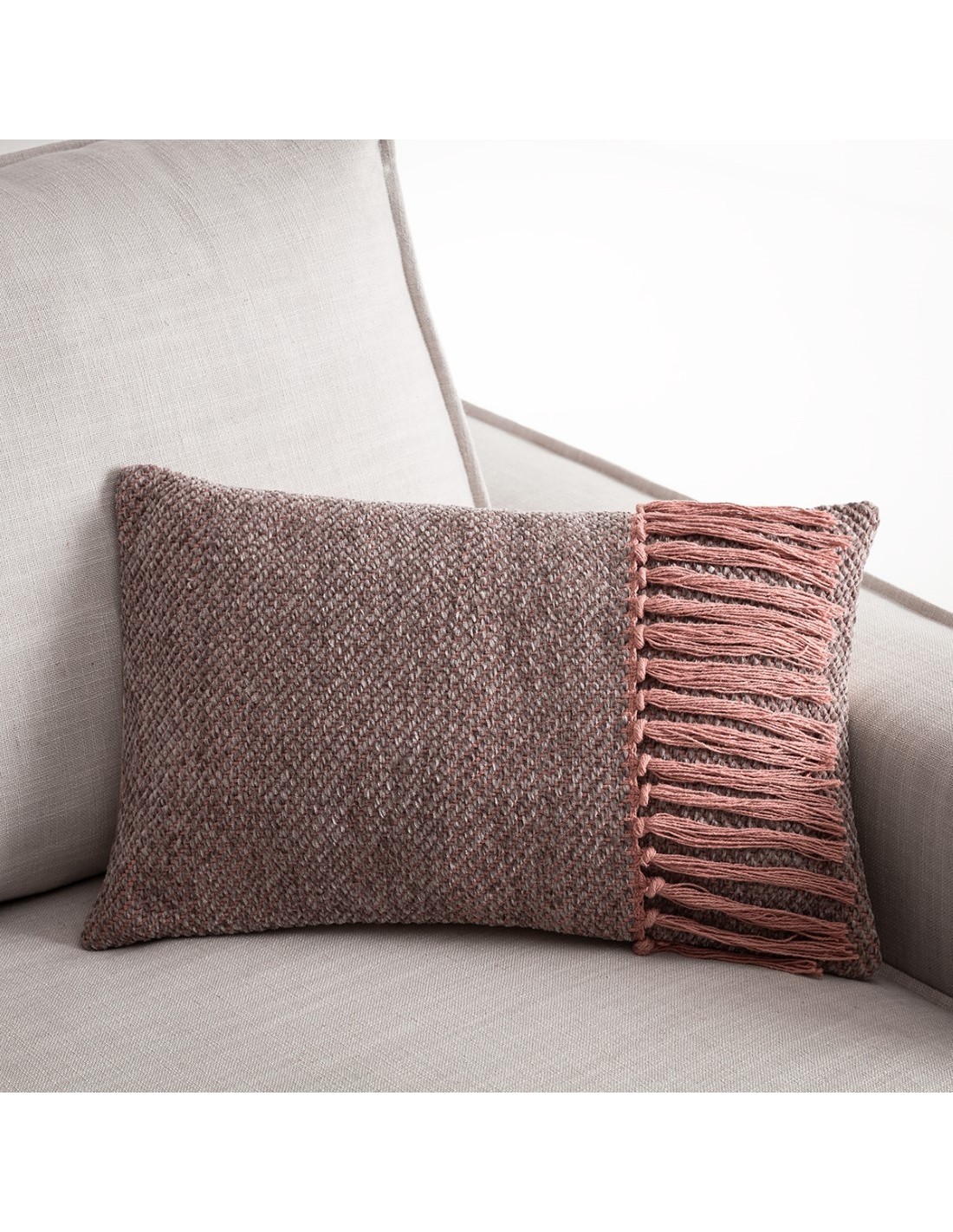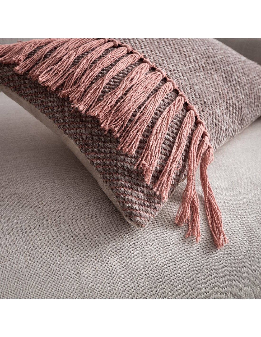 Ανθεκτική πλέξη τύπου ψάθας με μαλακά chenille νήματα και μακρύ βαμβακερό κρόσσι.