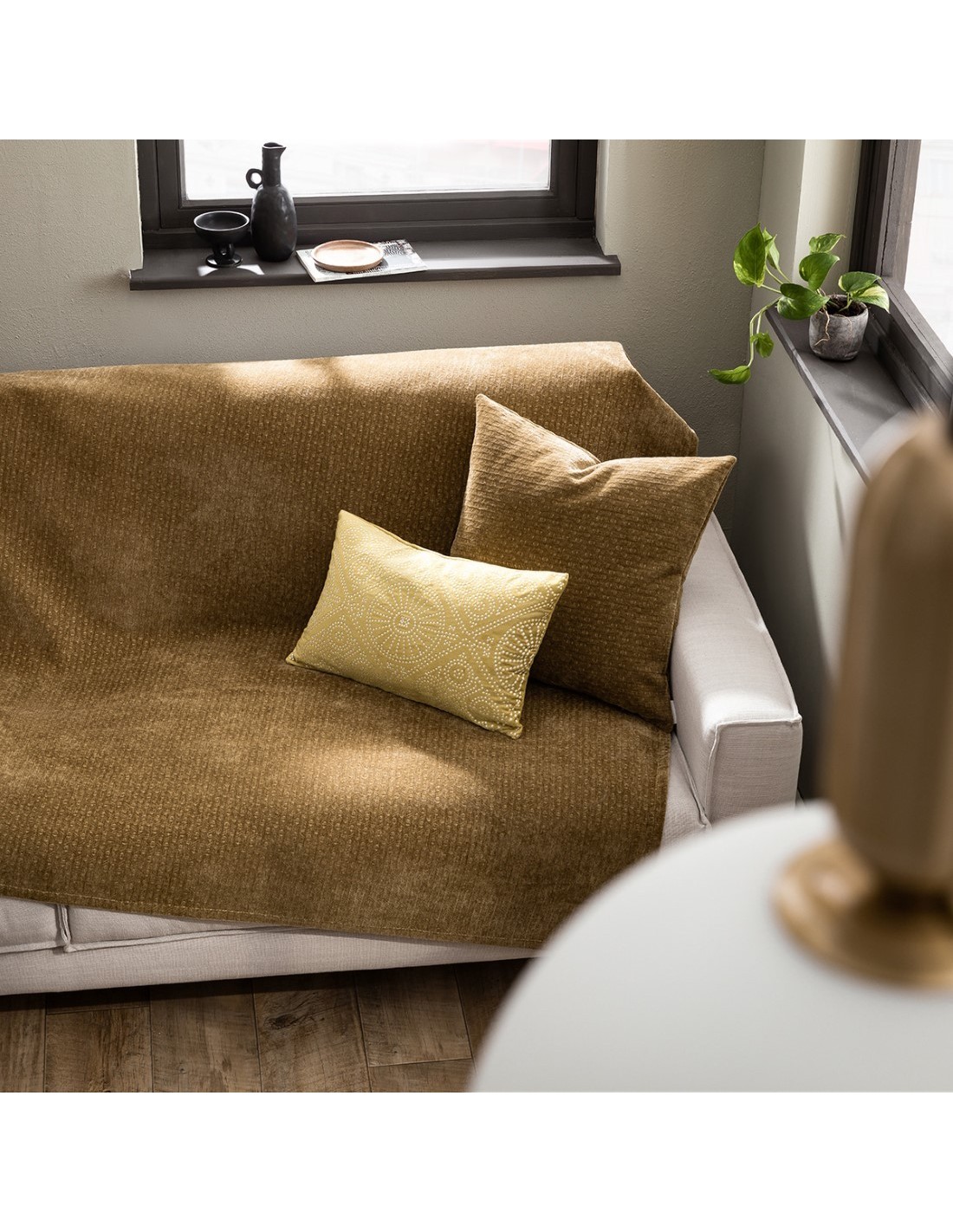 Από απαλό βελούδινο ύφασμα με κεντημένο ανάγλυφο σχέδιο.
