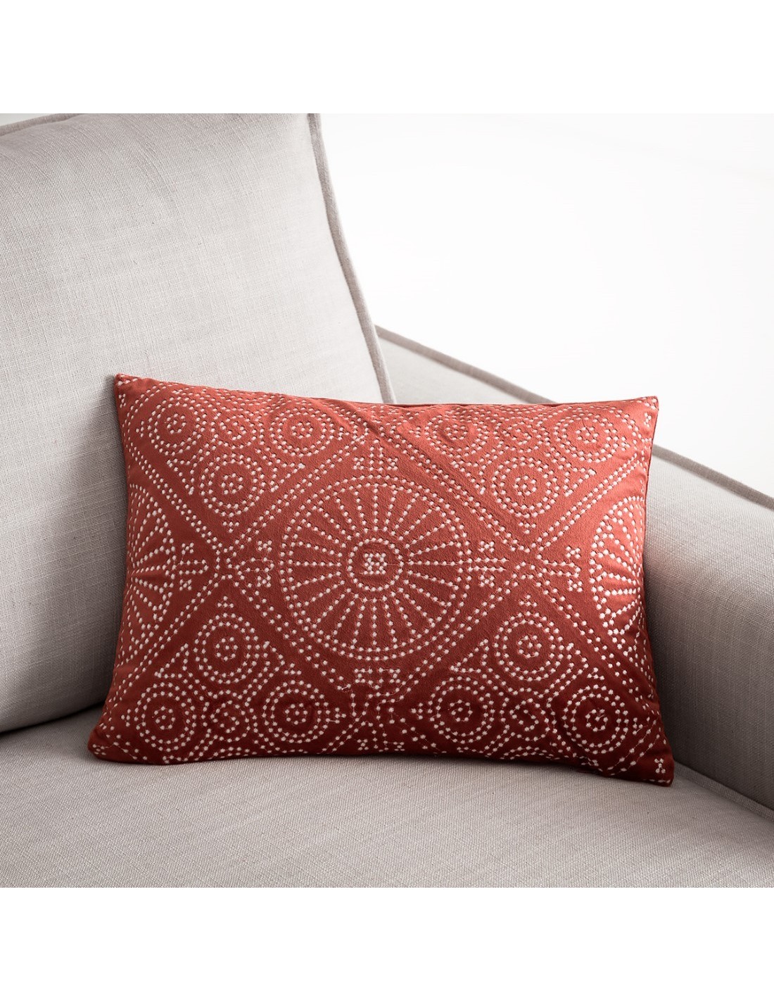 Από απαλό βελούδινο ύφασμα με κεντημένο ανάγλυφο σχέδιο.