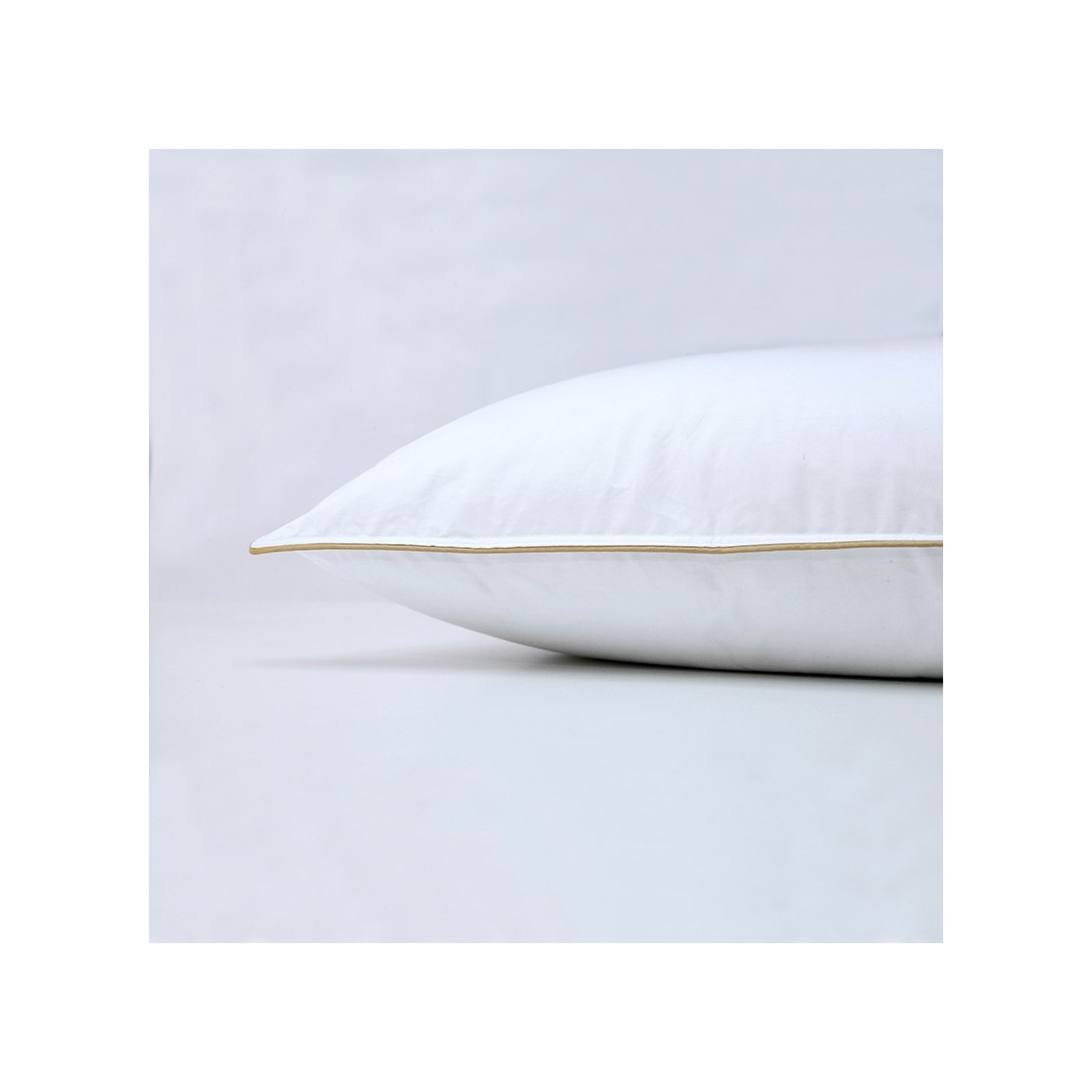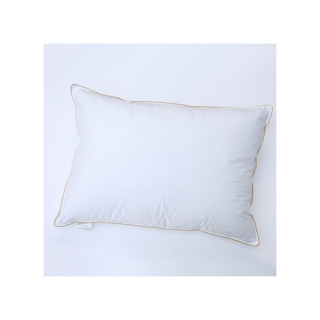 Βαμβακερό μαξιλάρι ύπνου σε διάσταση 50Χ70, με γέμιση 850gr και μπεζ ρέλι περιμετρικά. Είναι εξαιρετικά μαλακό, ιδανικό να προσφέρει το απόλυτο αίσθημα άνεσης σε όσους κοιμούνται μπρούμυτα. Είναι αντιμικροβιακό, αντιαλλεργικό, εμποδίζει τη δημιουργία οσμών κι έχει μεγάλη διάρκεια ζωής. Το εξωτερικό ύφασμα είναι 100% Βαμβάκι περκάλι 233 κλωστών και το εσωτερικό του είναι 100% μικροΐνες 3D+0.9D. Διατίθεται σε θήκη Non-woven.