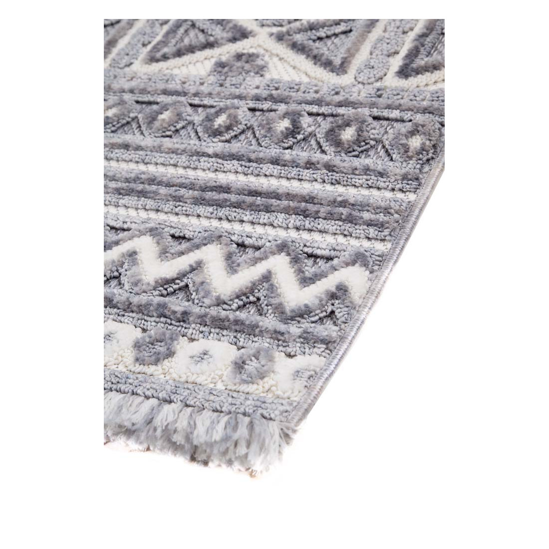 Μοντέρνα ανάγλυφα χαλιά τριών επιπέδων με ιδιαίτερη γυαλάδα στην επιφάνεια και μοναδικό κρόσσι. Σε λευκούς, ασημί και γκρι χρωματισμούς ανανεώνει το χώρο σας και αποτελεί ξεχωριστή πρόταση τόσο για το σαλόνι καθώς για την κρεβατοκάμαρά σας. Πρακτικό και εύκολο στο καθάρισμα.