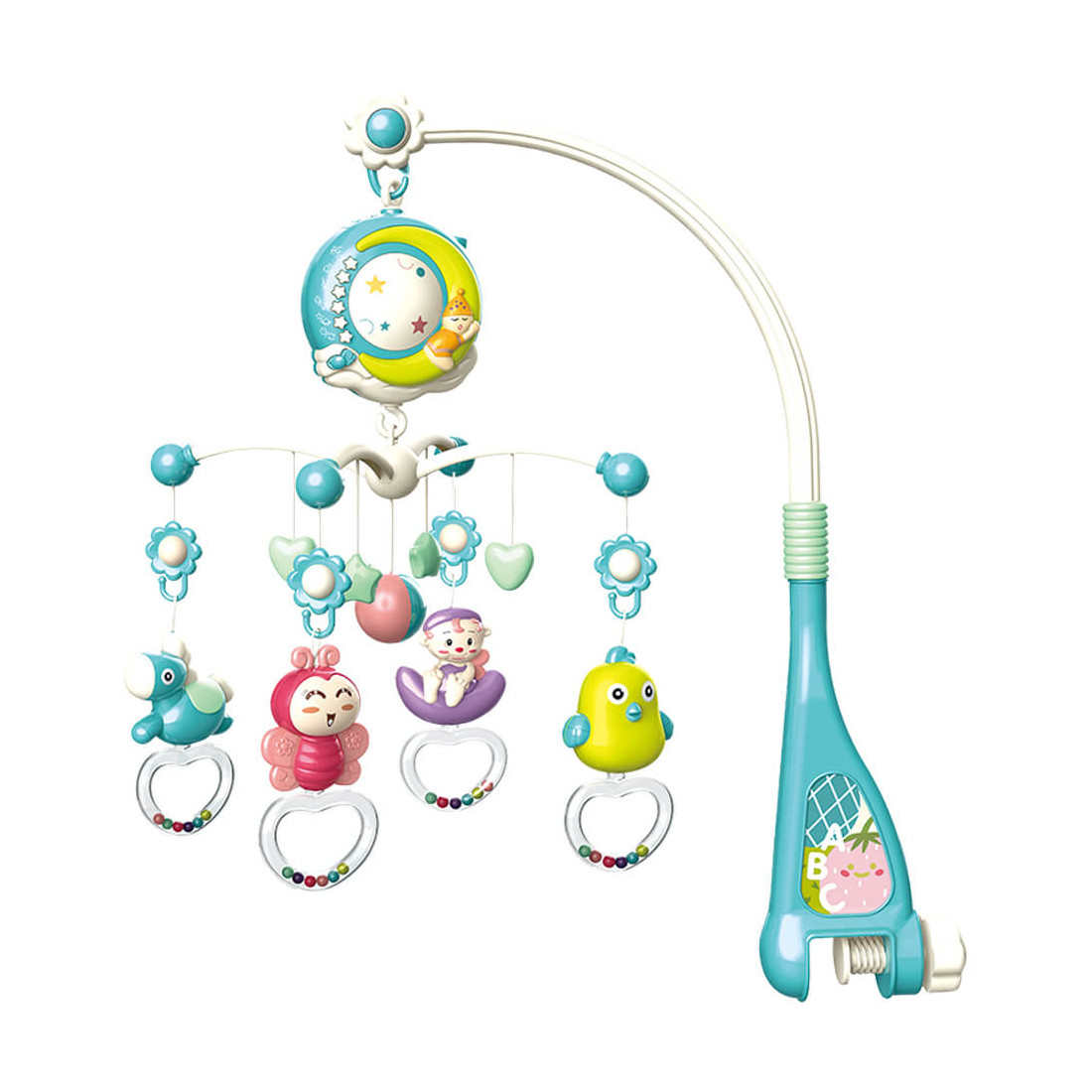Το μουσικό περιστρεφόμενο παιχνίδι Moonlight με προβολέα της Bebe Stars είναι η ιδανική λύση για να απασχολεί το μωρό σας και να το διασκεδάζει με τους ήχους και τα χαριτωμένα παιχνιδάκια την ώρα που βρίσκεται ξαπλωμένο στη κούνια του.