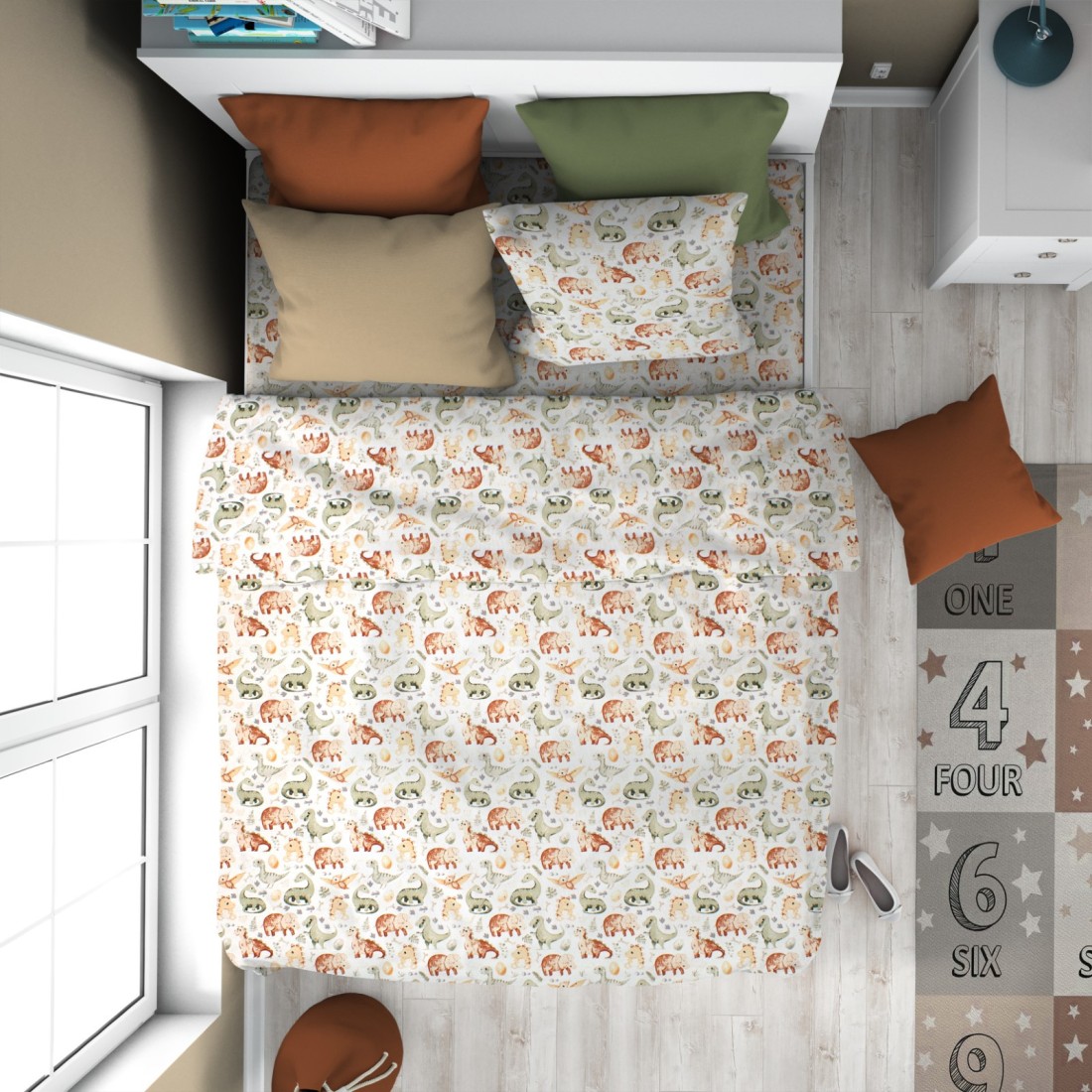Κατασκευασμένο από 100% βαμβακερό ύφασμα 144 κλωστών, εμπριμέ με χαρούμενα χρώματα και παραστάσεις.