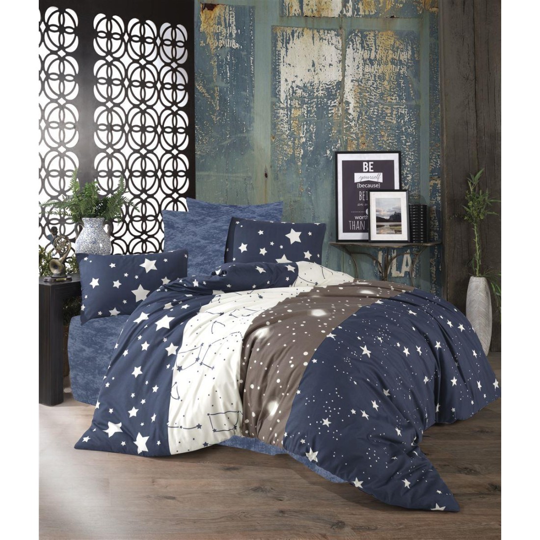 Απαλό και ζεστό Πάπλωμα για μονό κρεβάτι διαστάσεων 160Χ240 cm με γέμιση βατα αντιαλλεργική 300 gsm. -Κατασκευασμένo στην πάνω πλευρά από ύφασμα Εμπριμέ σύνθεσης 70% βαμβάκι - 30% Polyester. 144 TC. σε χαρούμενα και απαλά χρώματα. με μοντέρνες και σύγχρονες παραστάσεις και στη κάτω πλευρά από Μονόχρωμο Dark Blue Shadow κομποζέ ύφασμα της ίδιας σύνθεσης. Κατασκευάζεται στην Ελλάδα. -Συσκευασία Βαλιτσάκι Polybag με φερμουάρ και χερούλι.