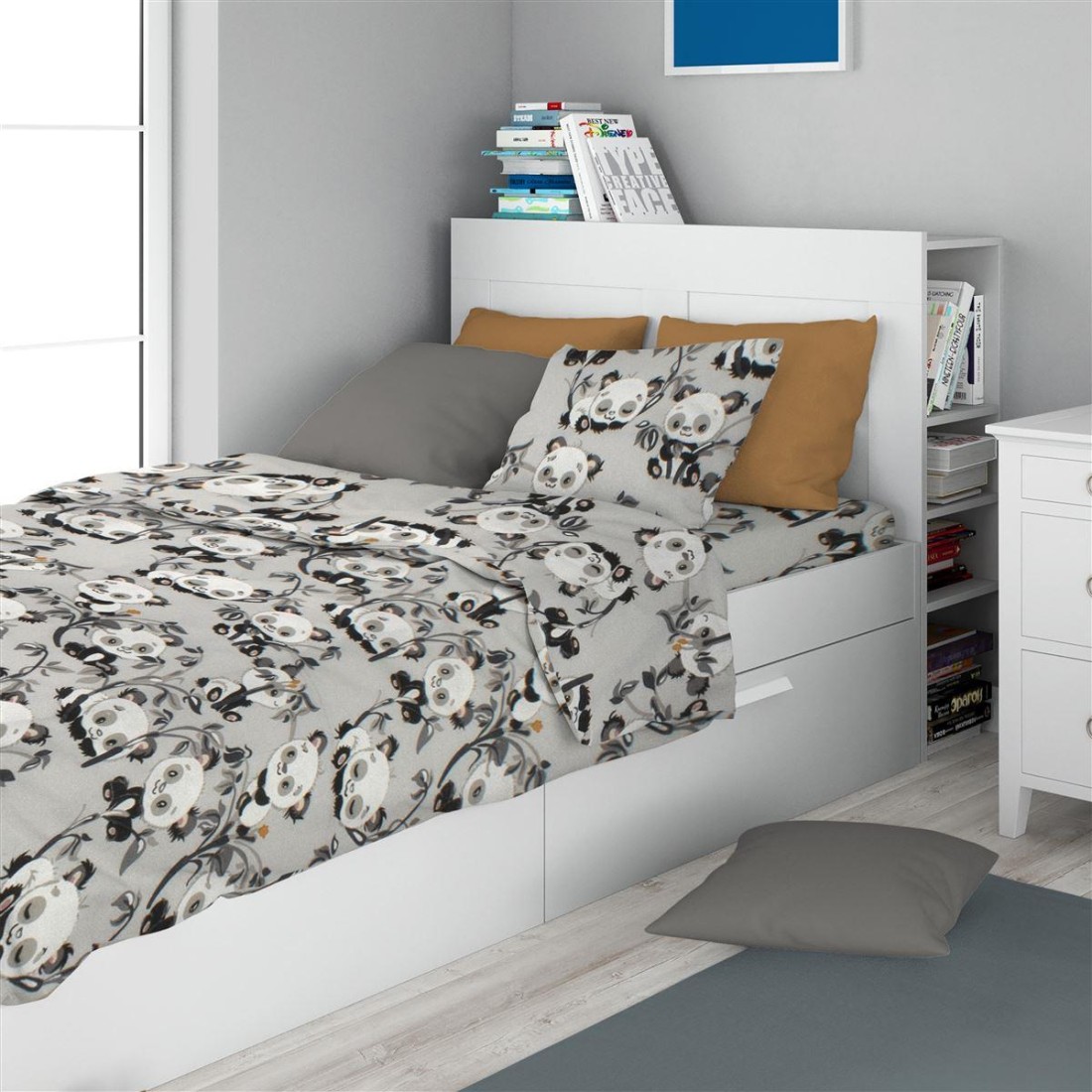 Σετ Παιδικά Σεντόνια Φανελένια Μονά 3 Τεμαχίων Dimcol Panda Bear 96 160X240 Grey