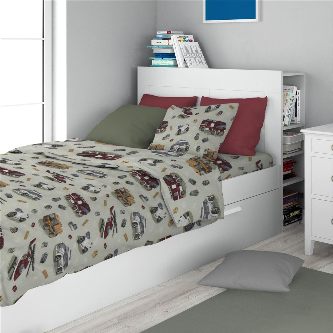 Παιδικό σετ σεντόνια 3 τεμαχίων που περιέχει: 2τεμ. σεντόνια Flat για μονό κρεβάτι. διαστάσεων 160Χ240 cm και 1τεμ. μαξιλαροθήκη. διαστάσεων 50Χ70 cm. Κατασκευασμένο από 100% βαμβακερό φανελένιο ύφασμα. 144 κλωστών. με χαρούμενα χρώματα και μοντέρνες παιδικές παραστάσεις. Κατασκευάζεται στην Ελλάδα. Συσκευασία PVC bag.