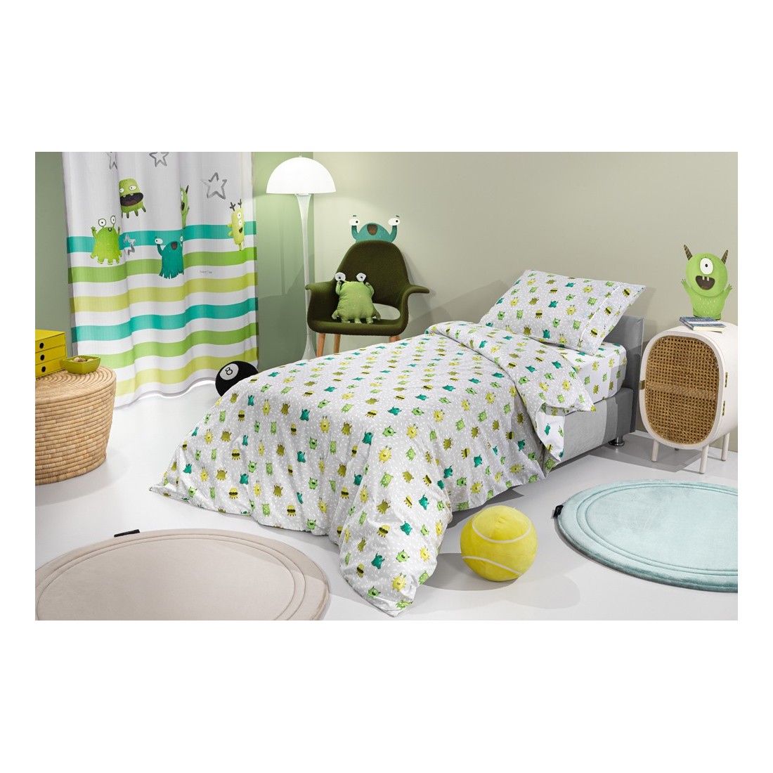 Σετ Παιδικά Σεντόνια Μονά 3 Τεμαχίων Saint Clair Monsters Lime 165x250
