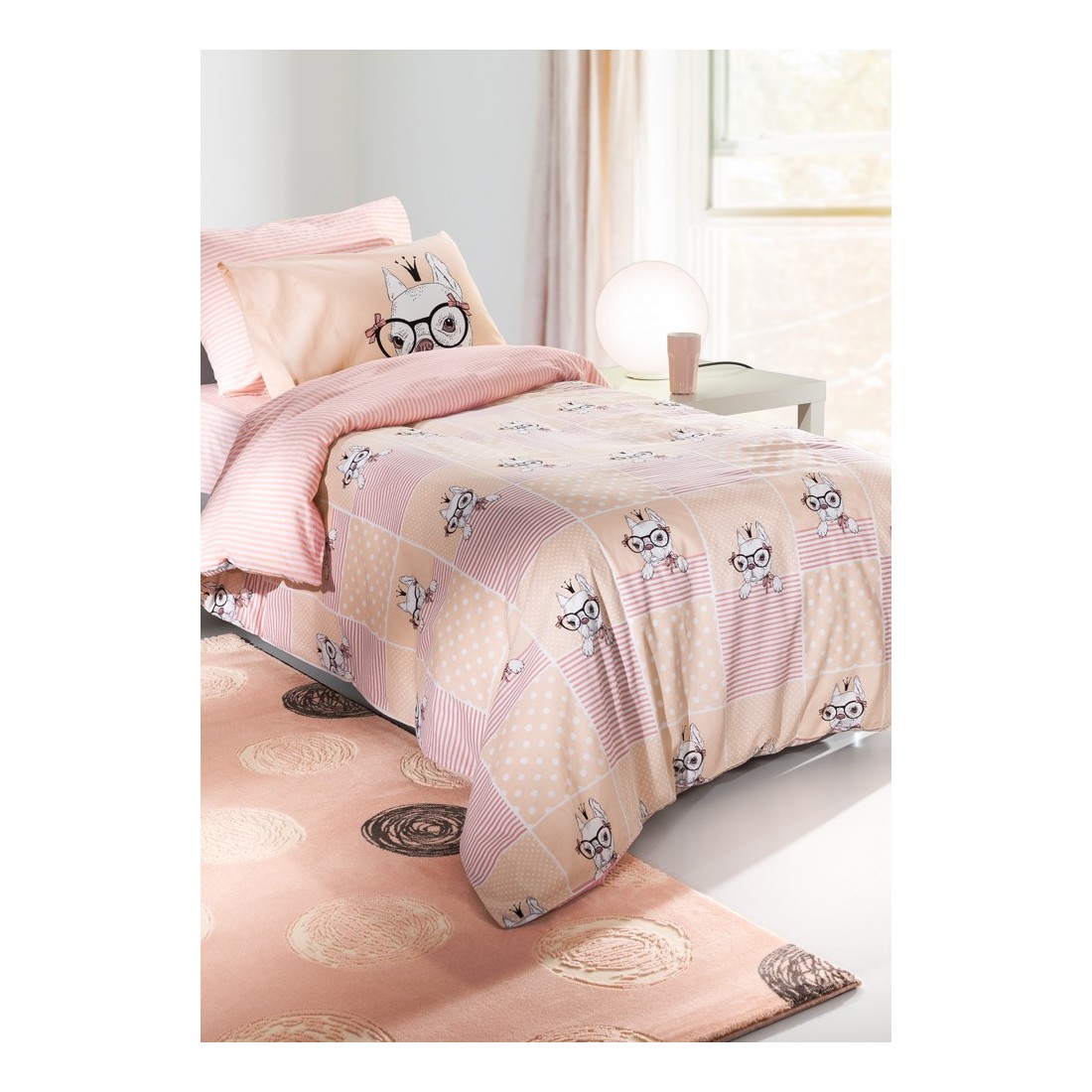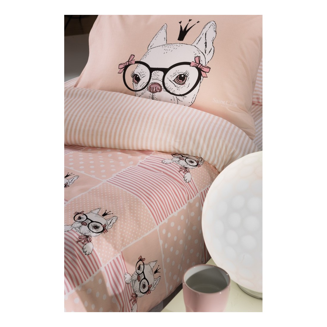 Τα παιδικά σεντόνια Rosie Pink της εταιρίας Saint Clair αγκαλιάζουν το παιδί σας, αφήνοντας μία αίσθηση τρυφερότητας. Ρίγες και στέμματα και ένα χαριτωμένο και παιχνιδιάρικο σκυλάκι, κοσμούν το κρεβατάκι του. Πρόκειται για ένα σετ σεντονιών σε παλ αποχρώσεις. Διαχρονικά και ανθεκτικά, 100 % βαμβακερά.