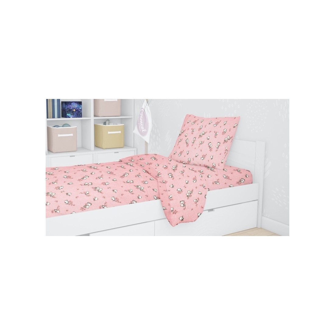 Σετ Σεντόνια Φανελένια Μονά 3 Τεμαχίων Dimcol Birds 15 Pink, που περιλαμβάνει πανωσέντονο, κατωσέντονο και μαξιλαροθήκη, διακοσμημένα με χαρούμενα χρώματα και παραστάσεις.
