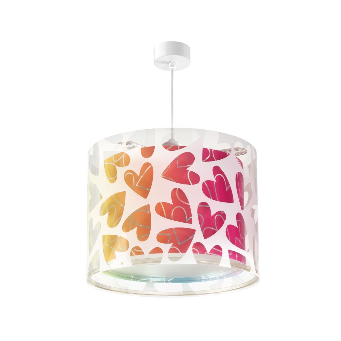 Μοντέρνο, εφηβικό φωτιστικό οροφής σχεδιασμένο για γενικό φωτισμό. Φωτίζει και προσθέτει διασκεδαστικό χαρακτήρα και χρώμα παρέχοντας ομοιόμορφο και άπλετο φωτισμό. Δημιουργεί περιβάλλον κατάλληλο για όλες τις δραστηριότητες -διασκέδαση ή δημιουργία. Το Cuore κρεμαστό φωτιστικό οροφής για εφηβικά δωμάτια συμπληρώνει τα υπόλοιπα φωτιστικά της συλλογής και είναι εξαιρετικά εύκολο στην εγκατάστασή του. Μεγάλο σε μέγεθος. Συμπεριλαμβάνεται κιτ ανάρτησης ρυθμιζόμενο στο ύψος κατά την εγκατάσταση. Διακοσμημένη ροζέτα κάλυψης σημείων σύνδεσης & στήριξης. Παρέχεται διαχυτής φωτός για ομοιόμορφο φωτισμό