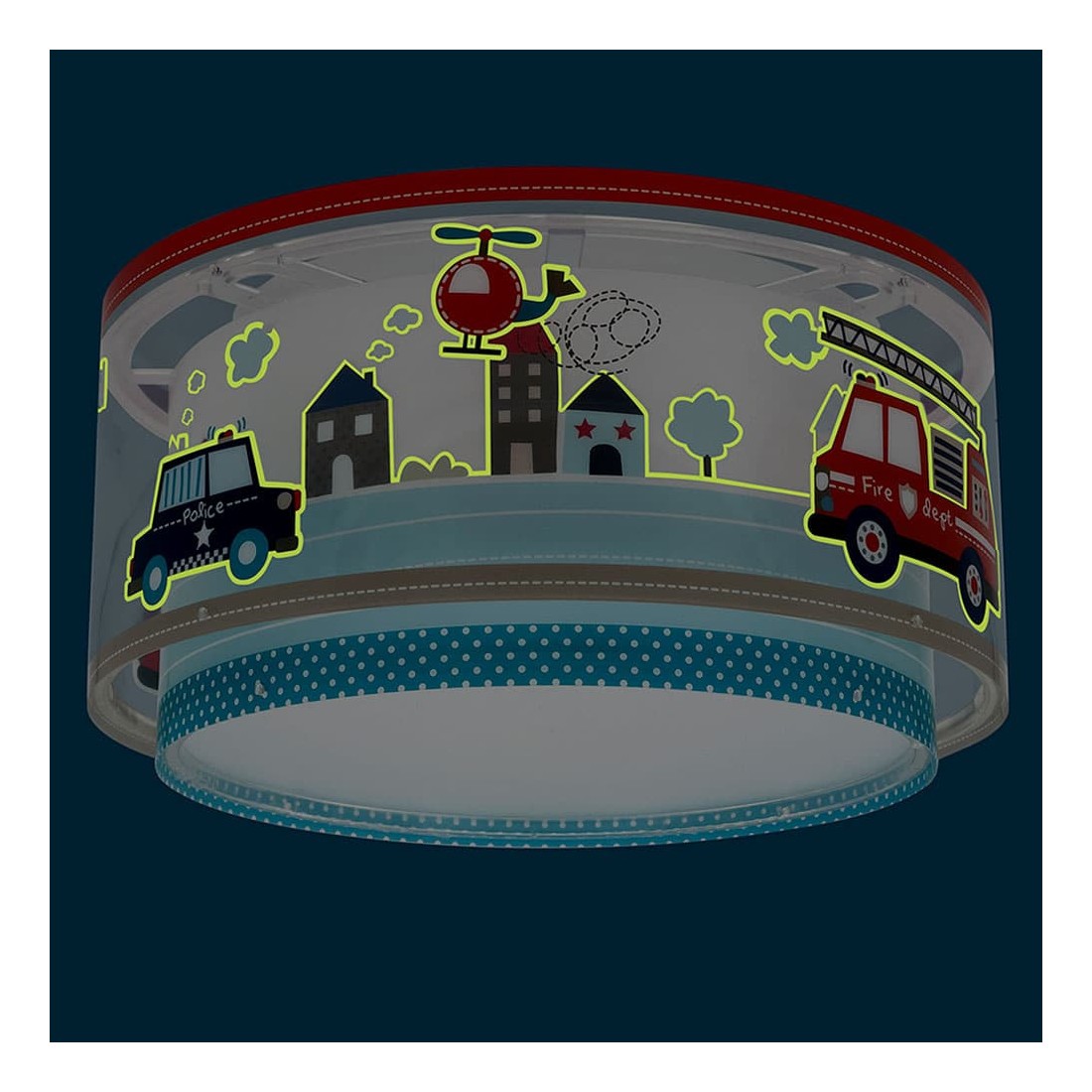 Παιδικό φωτιστικό οροφής τύπου πλαφονιέρα κατάλληλο για γενικό φωτισμό και όλες τις δραστηριότητες των παιδιών. Είναι διπλού τοιχώματος από άκαυστο λεπτό πολυπροπυλένιο και φωσφορίζοντα στο σκοτάδι εξωτερικά μέρη.