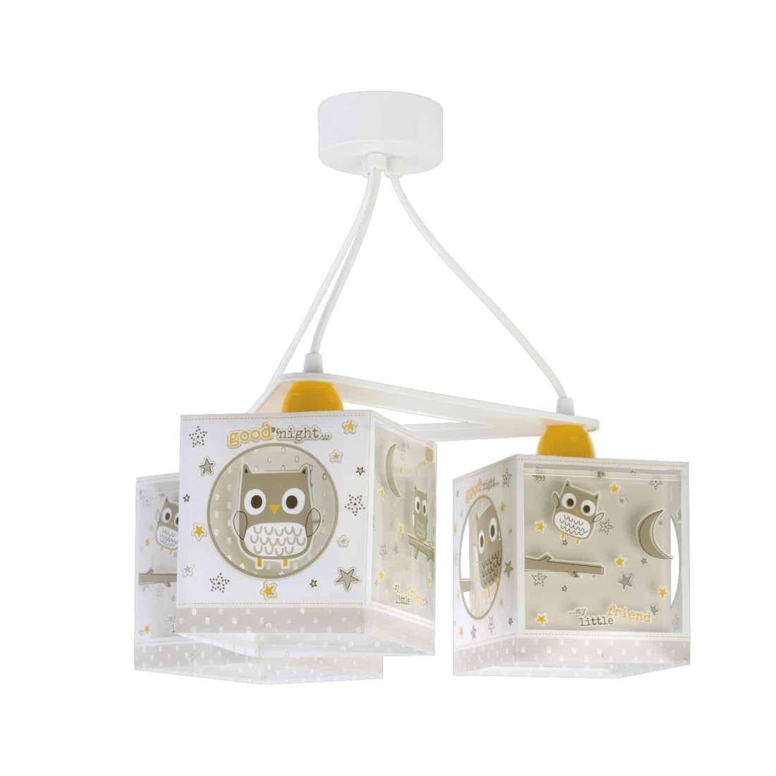 Μοντέρνα, τριγωνική κατασκευή με τρία φωτεινά σώματα σε κάθε γωνία και ανάλογες θέσεις λαμπτήρων. Κατασκευασμένο με διπλά τοιχώματα προσφέρει άπλετο φως, διασκεδαστικό χαρακτήρα και χρώμα σε κάθε σημείο του παιδικού δωματίου. Το εξωτερικό τοίχωμα των φωτιστικών σωμάτων έχουν φωσφορίζοντα στο σκοτάδι μέρη. Απόλυτα ασφαλές ώστε τα παιδιά να μπορούν να μελετήσουν, να παίξουν και να κοιμηθούν παρέα με το αγαπημένο τους θέμα. Κατασκευάζεται εξ ολοκλήρου στην Ευρώπη και συμπληρώνει τα υπόλοιπα φωτιστικά της συλλογής.