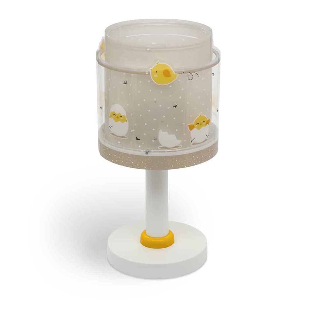 Κλασικής σχεδίασης το Baby Chick επιτραπέζιο παιδικό φωτιστικό με θέμα χαρούμενα κοτοπουλάκια και διπλό τοίχωμα. Καλωσορίστε το παιδί σας σε ένα δωμάτιο πλημμυρισμένο από μαγεία προσθέτοντας διασκεδαστικό χαρακτήρα και χρώμα ακόμα και στο σκοτάδι με τα φωσφορίζοντα μέρη του. Το Baby Chick επιτραπέζιο παιδικό φωτιστικό είναι κατάλληλο για συμπληρωματικό φωτισμό δημιουργώντας περιβάλλον που ενθαρρύνει τα παιδιά να επιδοθούν σε ότι τους αρέσει περισσότερο στη διασκέδαση και την δημιουργικότητα! Είναι ένα παιδικό φωτιστικό απόλυτα ασφαλές ώστε τα παιδιά να μπορούν να μελετήσουν, να παίξουν και να κοιμηθούν παρέα με τον αγαπημένο τους ήρωα. Ανθεκτικό στα χτυπήματα και τις πτώσεις. Το Baby Chick επιτραπέζιο παιδικό φωτιστικό συμπληρώνει τα υπόλοιπα παιδικά φωτιστικά της συλλογής. Είναι συμβατό με επίκαιρες προδιαγραφές ασφαλείας και κατασκευασμένο εξολοκλήρου στην Ευρώπη.