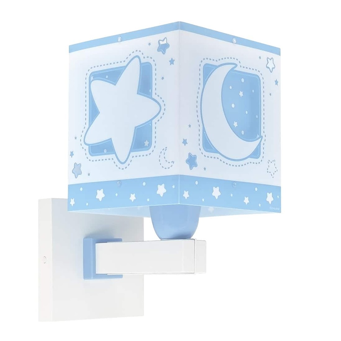 Παιδικό φωτιστικό, απλίκα τοίχου με θέμα από τον ουράνιο κόσμο των αστεριών και του φεγγαριού είναι ιδανικά σχεδιασμένη για γενικό ή συμπληρωματικό φωτισμό. Φωτίζει και προσθέτει διασκεδαστικό χαρακτήρα και χαρούμενο άγγιγμα σε κάθε παιδικό δωμάτιο ακόμα και στο σκοτάδι με τα εξωτερικά φωσφορίζοντα μέρη του. Η Moonlight Blue απλίκα τοίχου τοποθετείται στον τοίχο και είναι κατάλληλη ακόμα και για διάβασμα πάνω από το προσκέφαλο του κρεβατιού. Παρέχει ομοιόμορφο φως δημιουργώντας περιβάλλον που ενθαρρύνει τα παιδιά να επιδοθούν σε ότι τους αρέσει περισσότερο, διασκεδάζοντας ή δημιουργώντας! Η Moonlight Blue απλίκα τοίχου είναι διπλού τοιχώματος και συμπληρώνει τα υπόλοιπα παιδικά φωτιστικά της συλλογής. Είναι κατασκευασμένη εξ ολοκλήρου στην Ευρώπη με πιστοποιητικά ασφαλείας.