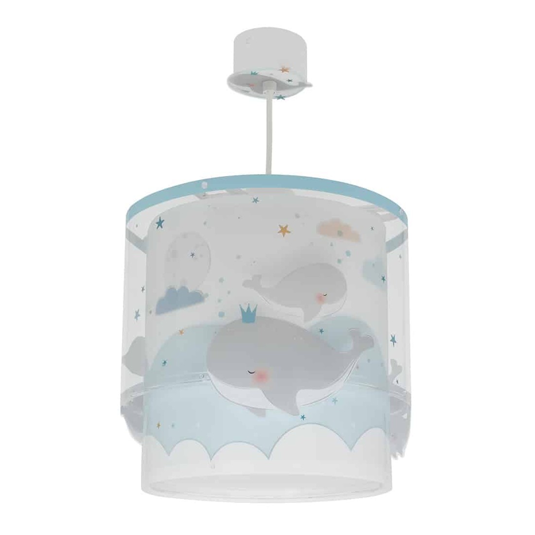 Είναι διπλού τοιχώματος με διάφανο το εξωτερικό του. Το Whale Dreams Blue φωτιστικό οροφής είναι κατασκευασμένο από συνθετικό υλικό αντοχής πολυπροπυλενίου και ανεξίτηλες εκτυπώσεις σε απαλούς χρωματισμούς. Παρέχεται διαχυτής φωτός, που προστατεύει τα μάτια των παιδιών μικρότερων ηλικιών αλλά και προσφέρει ομοιόμορφο φωτισμό σε κάθε παιδικό δωμάτιο. Το Whale Dreams Blue φωτιστικό οροφής συμπληρώνει τα υπόλοιπα φωτιστικά της συλλογής, τοποθετείται εύκολα και είναι κατασκευασμένο εξ ολοκλήρου στην Ευρώπη.