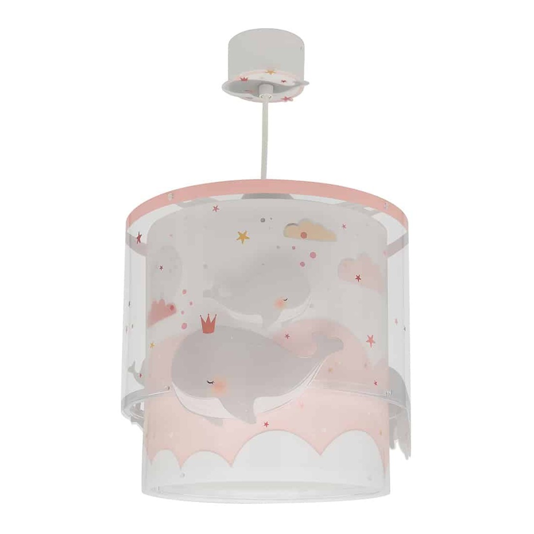 Είναι διπλού τοιχώματος με διάφανο το εξωτερικό του. Το Whale Dreams Pink φωτιστικό οροφής είναι κατασκευασμένο από συνθετικό υλικό αντοχής πολυπροπυλενίου και ανεξίτηλες εκτυπώσεις σε απαλούς χρωματισμούς. Παρέχεται διαχυτής φωτός, που προστατεύει τα μάτια των παιδιών μικρότερων ηλικιών αλλά και προσφέρει ομοιόμορφο φωτισμό σε κάθε παιδικό δωμάτιο. Το Whale Dreams Pink φωτιστικό οροφής συμπληρώνει τα υπόλοιπα φωτιστικά της συλλογής, τοποθετείται εύκολα και είναι κατασκευασμένο εξ ολοκλήρου στην Ευρώπη.