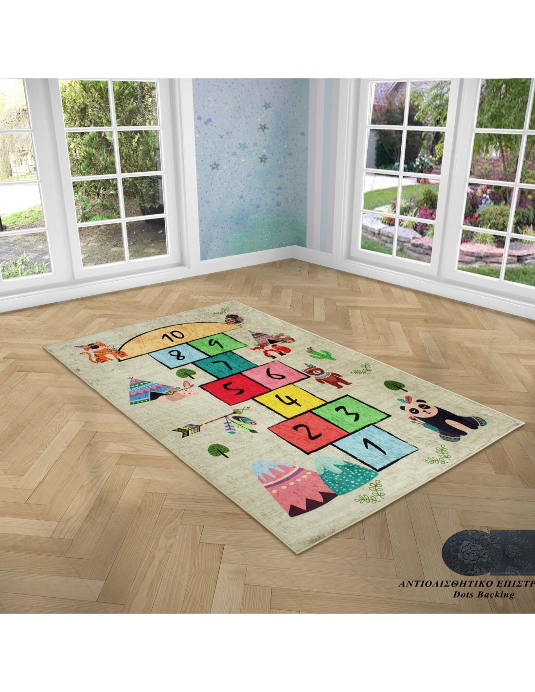 Χαλί με αντιολισθητικό επίστρωμα διαστάσεων 135x200 ιδανικό για το παιδικό δωμάτιο, ανθεκτικό στη καταπόνηση από το έντονο παιδικό παιχνίδι.